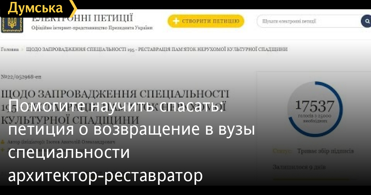 Помогите научить спасать: петиция о возвращение в вузы специальности «архитектор-реставратор»