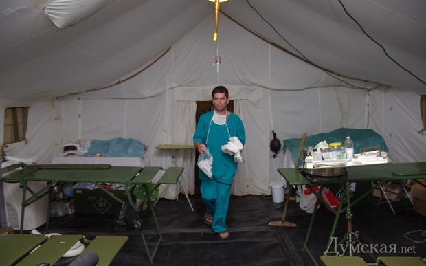 Полевой госпиталь одесского военно-медицинского клинического центра, развернутый на границе зоны АТО в Запорожской области получил посылки с малой родины.