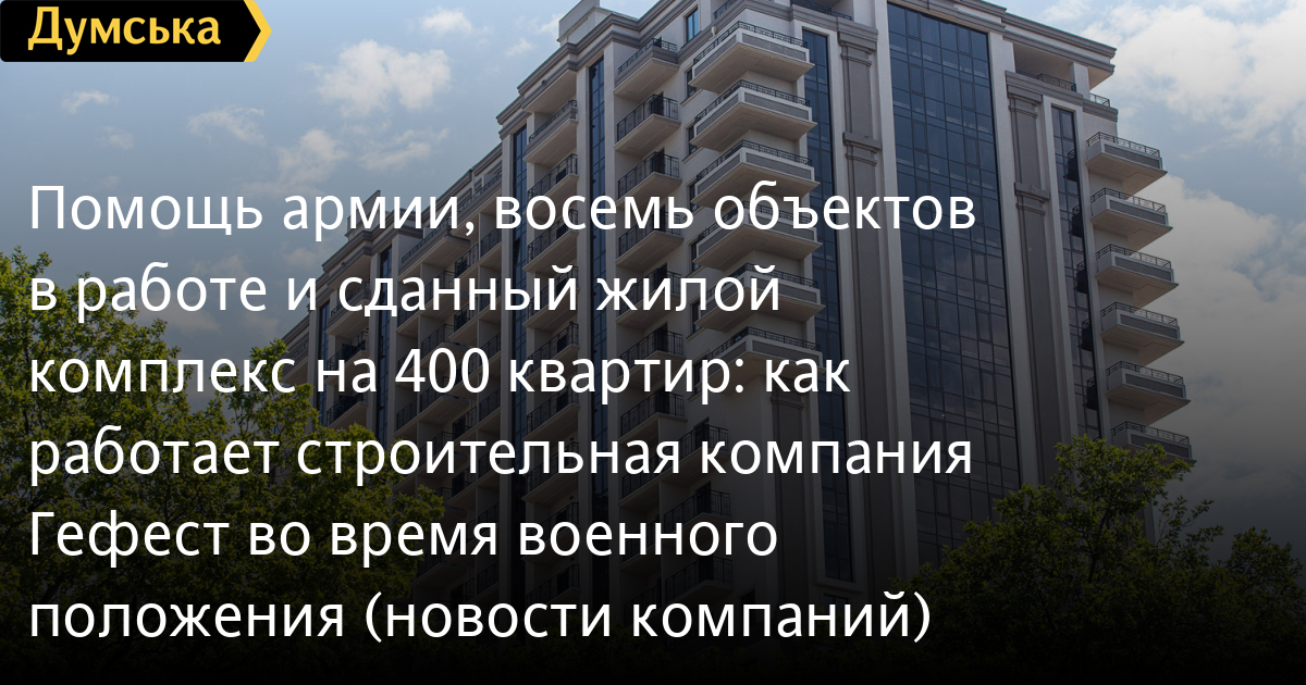 Полномасштабное вторжение российских войск в Украину 24 февраля стало настоящим шоком и испытанием для каждого из нас. Но украинцы не были бы украинцами, если бы перед лицом опасности не объединились, явив миру очередной пример героизма. Военнослужащие Вооруженных сил Украины переломили ситуацию и не оставили оккупантам шансов на блицкриг, в то время, как мирные граждане сконцентрировали свои усилия на волонтерском движении и помощи фронту. Сегодня, благодаря нашим защитникам, страна продолжает жить и развиваться, восстанавливают деятельность производственные компании, открываются рестораны, музеи и театры. Показательной, в части оживления экономики, является работа строительных компаний — самой динамичной сферы бизнеса последних лет. Строительная компания «Гефест» не останавливала работу в условиях военного положения ни на один день, а весь коллектив был задействован в помощи городу, подразделениям территориальной обороны и армии. «С начала войны силами наших бригад в Одесском регионе было установлено более 15 блокпостов, — вспоминает исполнительный директор строительной компании «Гефест» Василис Бумбурас. — Мы предоставили городу свою технику, перечислили финансовую помощь на нужды армии, закупили и передали военное оборудование и амуницию нашим защитникам. Одновременно работали в гуманитарном направлении: на постоянной основе помогаем продуктовыми наборами многодетным семьям, детям под опекой, особенным детям, доставили 80 тонн гуманитарного груза, закупили запас питьевой воды для Николаева и организовали три эвакуационных рейса украинцев в Грецию». Сегодня компания одновременно возводит восемь объектов, а количество занятых сотрудников превышает 1200 человек. В целом, за период с февраля по май «Гефест» залил 40 этажей монолита и три фундамента, а также сделал 33 этажа кладки. «В условиях военного положения мы смогли завершить строительство жилого комплекса «Акрополь-2» на 400 квартир, — отмечают в компании. — В ЖК «Эллада» с февраля по май залили шесть этажей, продолжаем работы в апарт-комплексе «Итака» и бизнес-центре «Платон». Там проходят самые важные и тяжелые фундаментные работы». Кроме того, уже после начала полномасштабного вторжения россии, компания «Гефест» начала возведение гостиничного проекта международной сети «Хилтон» в одном из самых престижных районов города. В компании подчеркивают, что на данный момент 95% строительных работ и закупок финансируется из личных средств учредителей компании. «Мы обеспечены строительными материалами минимум на три месяца и постоянно занимаемся вопросом закупок и поиском новых поставщиков, — говорят в компании. — На данный момент мы финансируем все затраты из личных средств. Есть свои сложности — нарушены привычные логистические маршруты, часть фирм, получив аванс, не выполняют договоренности, но все эти проблемы разрешимы. Сейчас каждый покупатель имеет индивидуальные условия, мы понимаем, что вложения сейчас — это огромное доверие к нам, как к застройщику, поддержка строительства и всей экономики, работающей на общую победу». Отметим, что согласно отчетам экспертов, рынок недвижимости Украины начинает понемногу оживать. Цены на квадратные метры остаются на довоенном уровне. С учетом того, что стоимость строительных материалов выросла минимум на 20%,