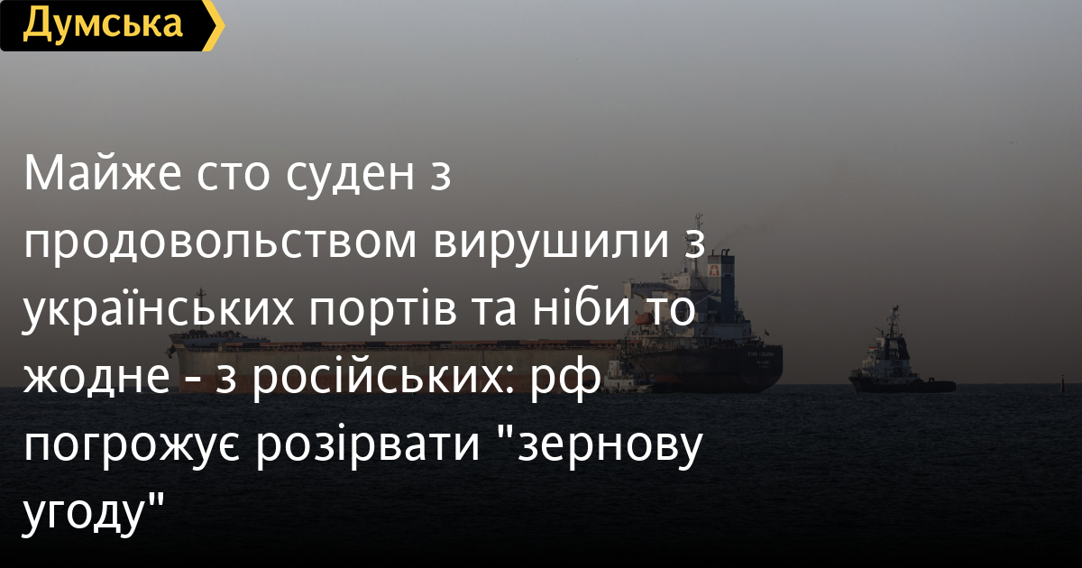 Постійний представник рф в ООН Василь Небензя погрожує припинити дію Стамбульської угоди, оскільки жодне судно з агропродукцією не вийшло з портів росії, разом з тим Україна вивезла вже понад два мільйони тонн продовольства.