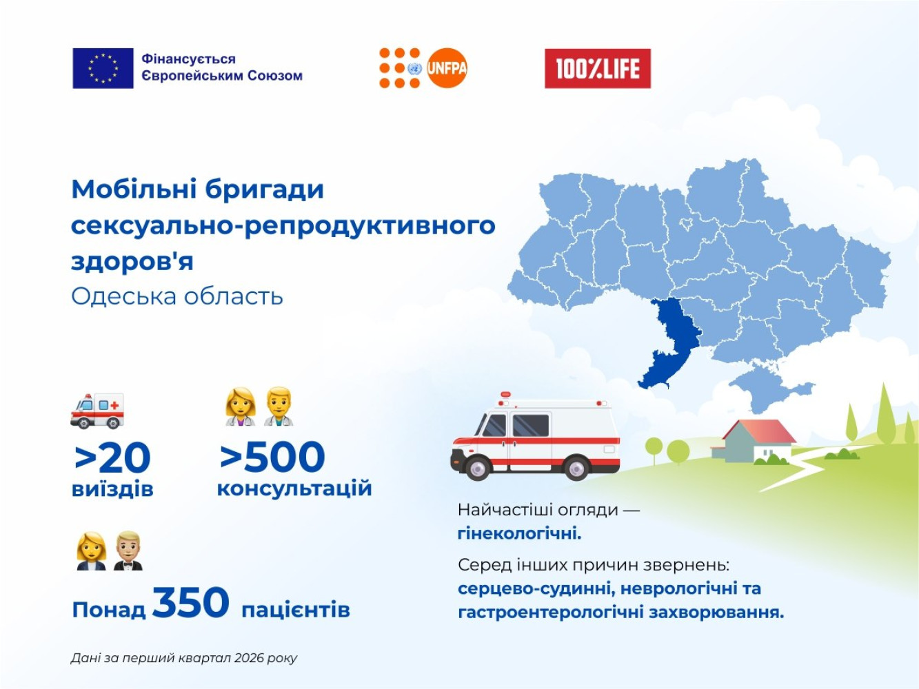 Более 500 бесплатных консультаций за квартал: в селах Одесчины работает мобильная гинекологическая бригадаБолее 20 выездов совершила мобильная гинекологическая бригада в Одесской области за первый квартал 2026 года и предоставила более 500 консультаций. Как сообщили в Министерстве по делам ветеранов Украины, в состав бригады входят акушеры-гинекологи, медсестры Одесской областной клинической больницы, а также терапевт с кардиологической специализацией. Приемы проводят в фельдшерско-акушерских пунктах, амбулаториях или непосредственно в специально оборудованном автомобиле. Во время каждого такого выезда пациенткам доступен гинекологический осмотр и профессиональные консультации по вопросам репродуктивного здоровья, планирования семьи или выбора средств контрацепции. Кроме того, врачи проводят ультразвуковую диагностику, делают электрокардиограмму и осуществляют забор материала для цитологических исследований. Также женщины могут пройти экспресс-тестирование на ВИЧ и гепатиты типов B и C. «В сложное время у нас есть возможность поддержать людей, дать им веру и помочь сохранить здоровье. Наши дороги часто длинные и непростые, но мы знаем, ради чего работаем», — отметила координатор мобильной бригады сексуально-репродуктивного здоровья Валентина Беспояса. Все медуслуги бесплатные, безопасные и строго конфиденциальны. Воспользоваться помощью мобильной бригады могут все женщины региона, включая внутренне перемещенных лиц и тех, кто пострадал от насилия. «Мобильные бригады стали одним из эффективных решений гуманитарного реагирования — они привозят профессиональных врачей туда, где люди сегодня больше всего нуждаются в поддержке», — сообщила руководитель проекта Елена Газизова. Отметим, что проект «Мобильные бригады сексуально-репродуктивного здоровья» реализуется в рамках гуманитарного реагирования UNFPA (Фонда ООН в области народонаселения в Украине) при финансовой поддержке Европейского Союза в сотрудничестве с БО «100% Жизнь». СМЕРТЬ РОССИЙСКИМ ОККУПАНТАМ! Заметили ошибку? Выделяйте слова с ошибкой и нажимайте control-enter |