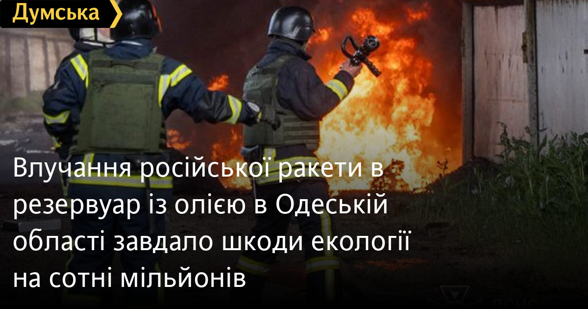 Понад 300 мільйонів гривень становлять збитки, завдані навколишньому середовищу під час влучання ворожої ракети в резервуар із олією в порту Південний 19 квітня.