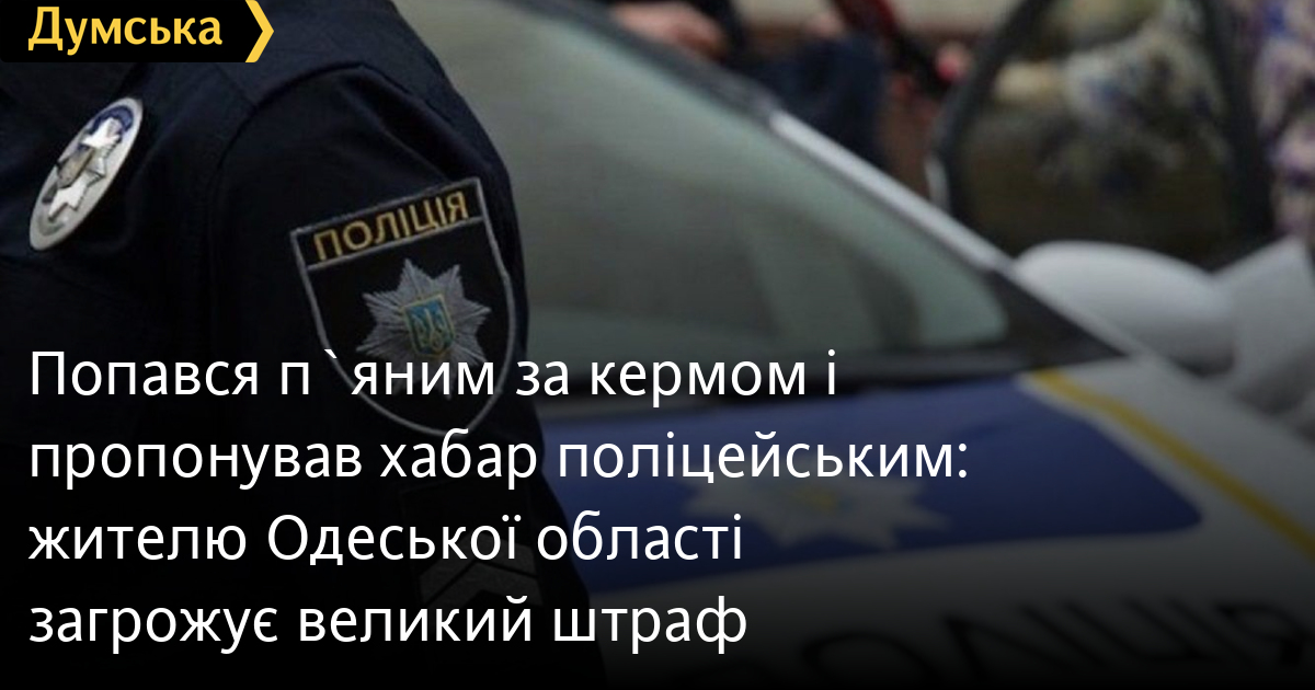 Попався п`яним за кермом і пропонував хабар поліцейським: жителю Одеської області загрожує великий штрафЖителю Білгород-Дністровського району загрожує великий штраф за водіння у п'яному стані і спробу підкупу правоохоронців. Як повідомили у пресслужбі поліції Одеської області, 21-річний хлопець сів за кермо у стані алкогольного сп'яніння, щоб з'їздити до своєї дівчини, але не впорався з керуванням і з'їхав у кювет. Унаслідок ДТП ніхто не постраждав. Патрульні, які прибули на місце, виявили у порушника ознаки сп'яніння. Розуміючи, що на нього чекає покарання, хлопець почав пропонувати їм гроші. Навіть після того, як йому нагадали, що це кримінальний злочин, він не зупинився. Поліцейські викликали на місце слідчих і склали на порушника протоколи за керування у п'яному вигляді та порушення ПДР. Максимальне покарання за цими статтями — 17 тисяч гривень штрафу з позбавленням прав на рік. Крім того, хлопцю повідомили про підозру за спробу дати хабар поліцейським (ч. 1 ст. 369 КК України). Санкція цієї статті передбачає штраф від 17 до 68 тисяч гривень або обмеження волі на строк від двох до чотирьох років, або позбавлення волі на той самий строк. Помітили помилку? Виділяйте слова з помилкою та натискайте control-enter Новини по цій темі: 12 серпня 2025: Як у кіно: в Одесі затримали драгдилера з партією психотропів на 20 мільйонів (фото) 9 серпня 2025: Обіцяла «закрити очі» на порушення: працівницю Одеської митниці спіймали на хабарі у чверть мільйона гривень 4 серпня 2025: Експертизу не зробили, камери не подивилися: одеські волонтери скаржаться на саботаж поліції у розслідуванні вбивства собаки 29 липня 2025: В Усатово Одеської області сталася перестрілка: поліція працює на місці (відео, оновлено) |