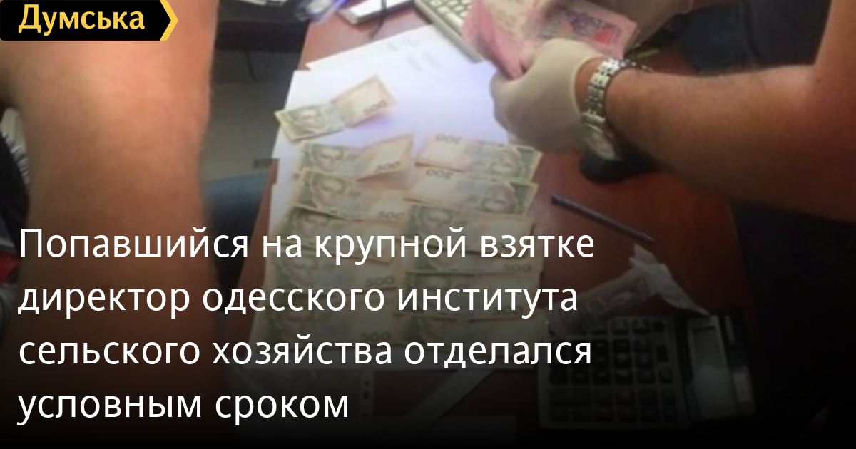 Попавшийся на крупной взятке директор одесского института сельского хозяйства отделался условным срокомК пяти годам лишения свободы с заменой наказания трехлетним испытательным сроком приговорил Овидиопольский районный суд Одесской области бывшего директора института сельского хозяйства Причерноморья Национальной академии аграрных наук Василия Рипенко. Его признали виновным в совершении преступления, предусмотренного частью 2 ст. 15 и частью 4 ст. 190 УК Украины — «покушение на мошенничество в особо крупных размерах». Первоначально, надо сказать, руководителя привлекали к ответственности по части 4 ст. 368 УК - «получение неправомерной выгоды в особо крупном размере». Рипенко должны были отправить в колонию на 12 лет, но суд решил, что доказательств именно взяточничества правоохранители не нашли, а имела место лишь попытка мошенничества. Мы писали об этом случае. Директора института задержали в августе 2016 года сотрудники СБУ. Он вымогал 3 млн грн у депутата Одесского облсовета, который должен был возглавить подведомственное институту исследовательское хозяйство имени Суворова, — из расчета 500 тысяч гривен за каждый гектар, обрабатываемый предприятием. При задержании у Рипенко изъяли 500 тысяч гривен. Впоследствии оказалось, что в тот же день он подал заявление об увольнении с занимаемой должности (очевидно, его написали задним числом, но доказательств этому нет), поэтому в момент получения взятки мужчина не мог контролировать хозяйство имени Суворова. К тому же последнее уже тогда было признано банкротом. В суде обвиняемый заявил, что инициатива со взяткой исходила от «пострадавшего» — того самого депутата облсовета. Якобы он предлагал ему деньги. Впрочем, суд установил, что инициатором был все же директор института. В итоге коллегия под председательством Андрея Бочарова изменила квалификацию преступления, решив, что имело место покушение на мошенничество. СМЕРТЬ РОССИЙСКИМ ОККУПАНТАМ! Заметили ошибку? Выделяйте слова с ошибкой и нажимайте control-enter Новости по этой теме: 15 июля 2025: Требовала 400 евро за подделку документов для пенсии: в Одесской области чиновница попалась на взятке (фото, видео) 27 июня 2025: За 40 тыс. грн хотел купить секретные разработки: в Одессе задержали сотрудника частной фирмы 6 июня 2025: Требовал три тысячи долларов за справку об инвалидности: в Одессе задержали главврача больницы (фото) |