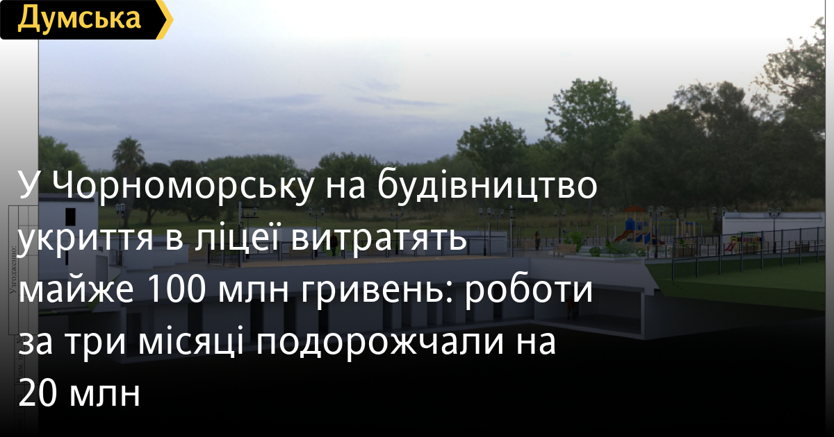 У Чорноморську на будівництво укриття в ліцеї витратять майже 100 млн гривень: роботи за три місяці подорожчали на 20 млнПротирадіаційне укриття для ліцею і дитячого садочку побудують у Чорноморську з другої спроби. Витратити на це планують майже 100 млн грн, більша частина коштів виділяється з державного бюджету — більше 83 млн грн, повідомляє кореспондент «Думської». Новий тендер з вибору підрядника оголосило управління капітального будівництва Чорноморської міськради. Кінцевий строк подачі заяв на участь 10 січня, у той же день запланований аукціон. Зазначимо, що це вже друга спроба обрати підрядника. Першого разу перемогла компанія «Хай-Рейз Констракшнз Холдинг», але торги скасували через невідповідність у документах. Але тоді проєкт коштував майже 80 млн грн - і будівництво мало завершитися в грудні 2025 року. Тепер же він подорожчав на 20 мільйонів і було продовжено терміни до квітня 2026. Саме укриття розраховане на 300 осіб, воно складатиметься з двох приміщень — одне з них для дизельної електропідстанції. У сховищі будуть класи для різних вікових категорій, для учнів ліцею та окремо для вихованців дитячого садка. Також у бомбосховищі розраховані медпункт і кімнати для зберігання запасів продуктів і води. Цікаво, що на поверхні має з’явитися дитячий майданчик. СМЕРТЬ РОСІЙСЬКИМ ОКУПАНТАМ! Помітили помилку? Виділяйте слова з помилкою та натискайте control-enter |