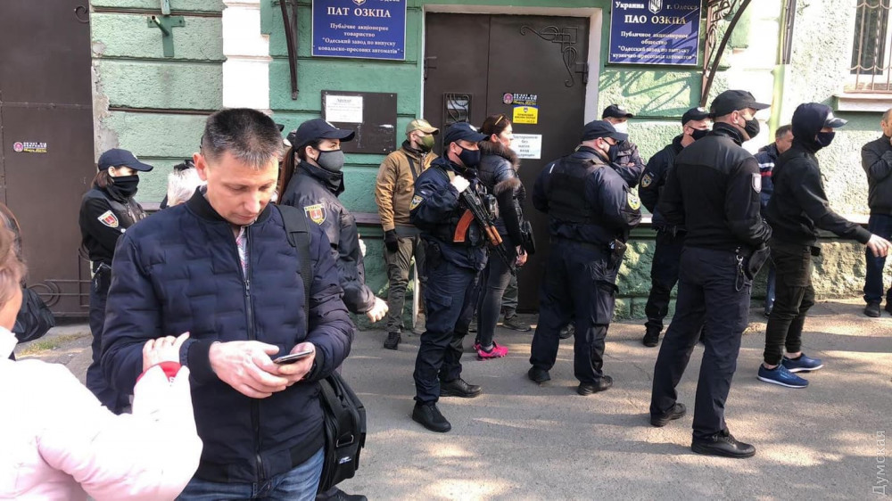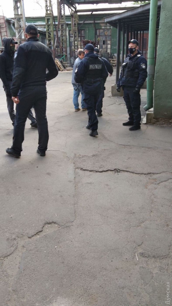Свои лица не скрывали только два человека — Александр Бережной, адвокат компании «Градоначальницкий», которая претендует на здания предприятия, и небезызвестный Евгений Резвушкин, руководитель организации «Автомайдан-Одесса» и директор охранной фирмы «Варта міста». Люди в балаклавах, по всей видимости, — сотрудники последней.
