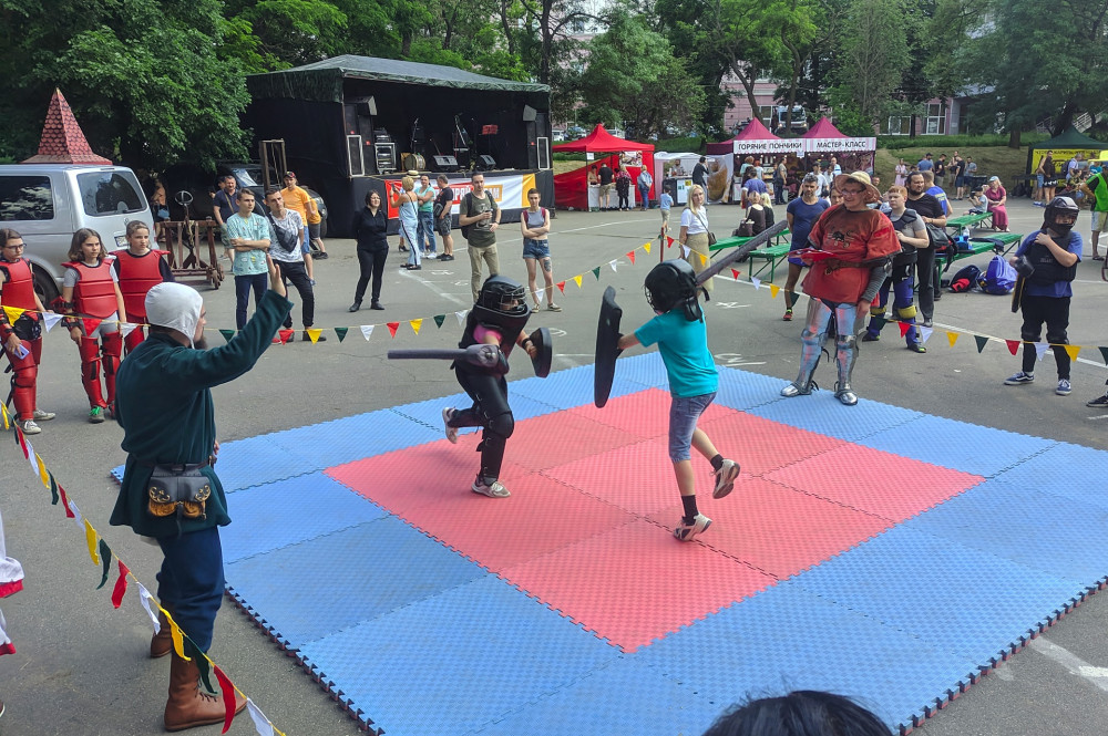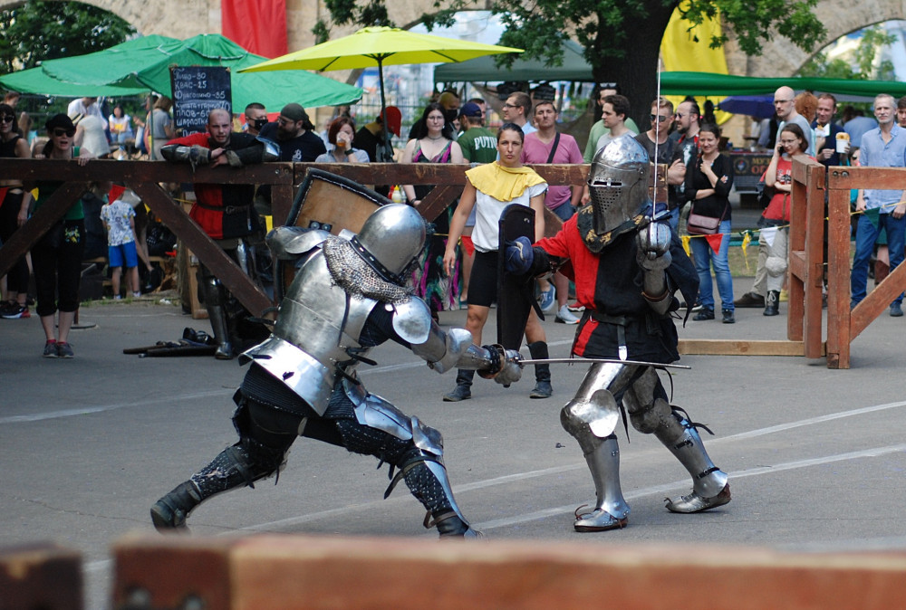 Также можно прослушать лекции по истории и культуре. Особый интерес вызвала лекция «Алкоголь в средневековой Европе» с дегустацией, которую прочитали гости из Киева. Позитивные эмоции от праздника нарушали разве что автомобили участников, припаркованные в зеленой зоне парка.