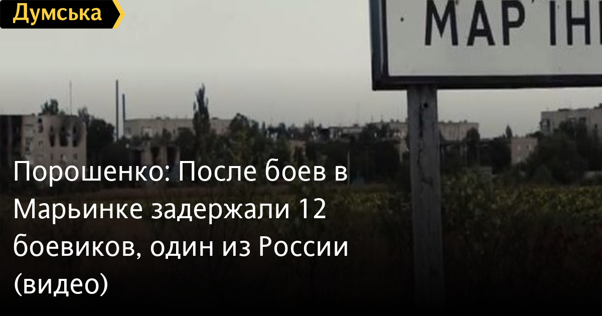 «Вследствие операции по зачистке Марьинка полностью освобождена от диверсантов, задержаны 12 человек, в том числе гражданин России, которые оказывали вооруженное сопротивление ВСУ», — сказал Порошенко.