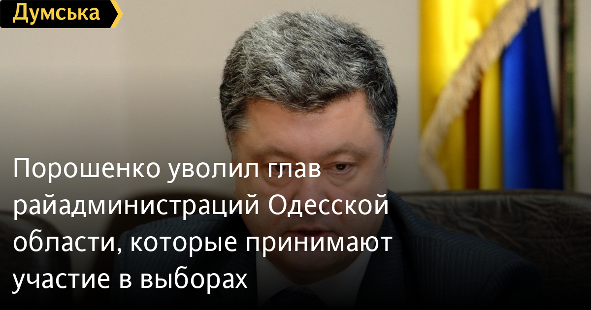 Президент Украины Петр Порошенко уволил двух глав райгосадминистраций Одесской области, которые зарегистрировались кандидатами в народные депутаты.