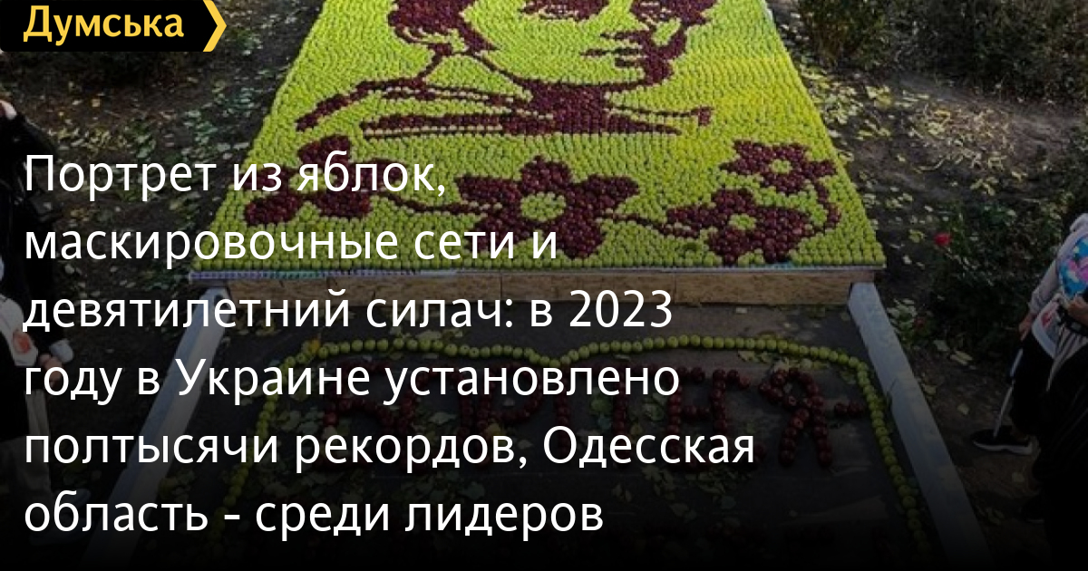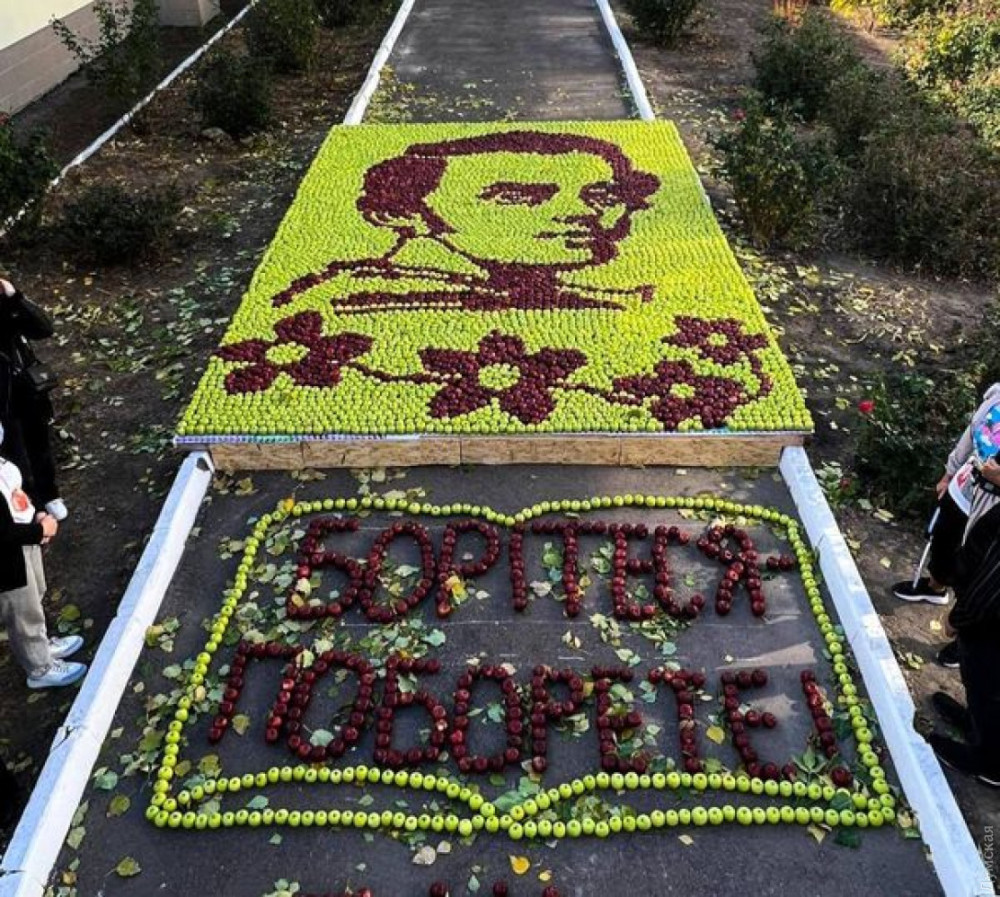 Самым креативным рекордом года экспертный совет назвал идею учеников Новопетровского лицея Одесской области, которые из семи тысяч яблок выложили портрет Тараса Шевченко площадью 24,5 кв.м.