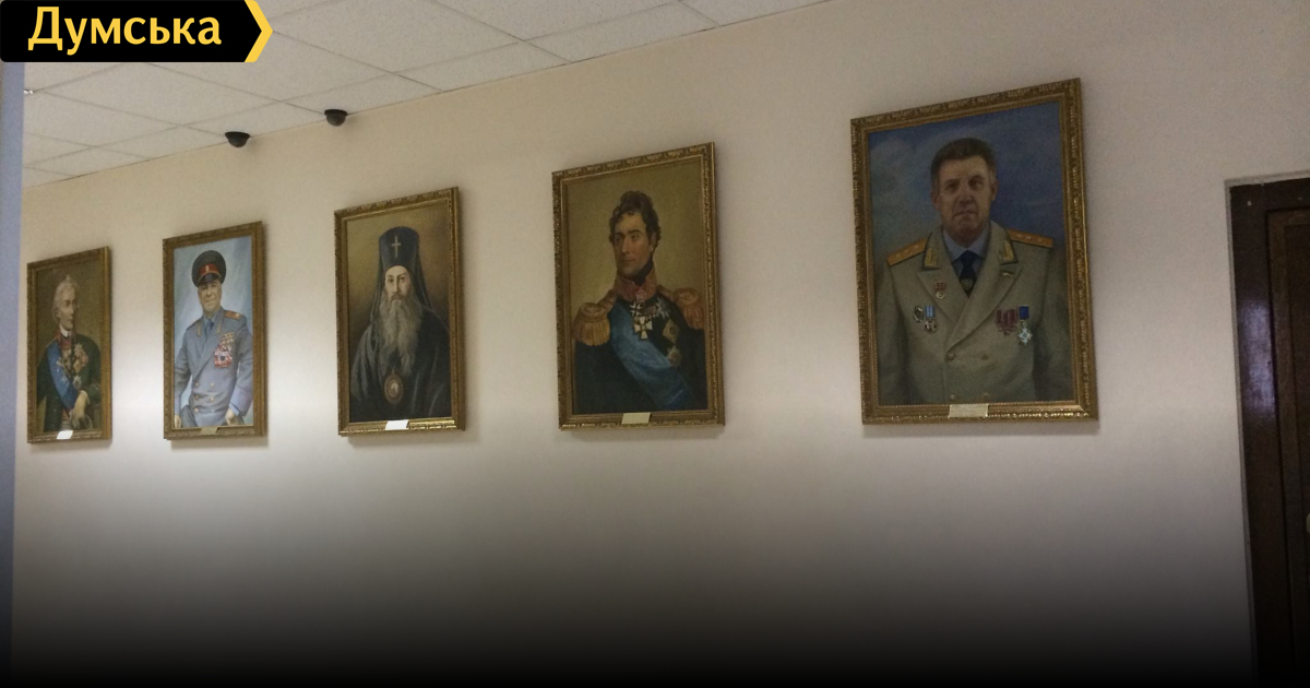 В одном ряду — изображения российского и советского полководцев Александра Суворова и Георгия Жукова, митрополита Херсонского Иннокентия, князя Михаила Воронцова и президента вуза, нардепа, заслуженного юриста Украины Сергея Васильевича Кивалова.