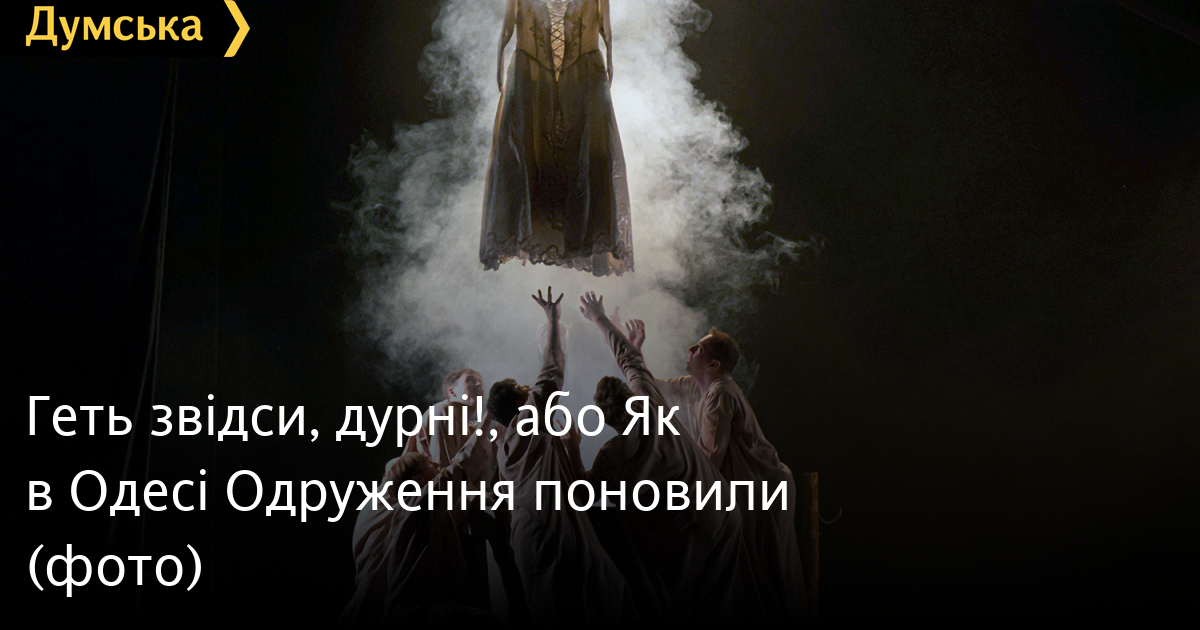 Показ вистави «Одруження» за мотивами п'єси Миколи Гоголя в перекладі Остапа Вишні відновили в Українському театрі імені Василька. Прем'єра постановки заслуженого артиста України Івана Уривського відбулася 12 квітня 2018 року, і ми про неї докладно писали тут. А коли вистава повертається на сцену в новому виконавському складі — це цілком можливо також вважати прем’єрою. До того ж настали інші часи, в кожного глядача виникають власні асоціації. До речі, про глядачів: їх трохи шкода. Вони ж-бо налаштувалися на комедію, йшли до театру святково вбраними, усміхненими. Проте ще до відкриття завіси їхні усмішки згасли — тужлива «Пісня Сольвейг» Едварда Гріга не залишила надії на комедію. Автори вистави зберігають визначений Гоголем жанр «цілком неймовірна подія», натякають в анонсі, що відбувається ця подія суто в уяві головної героїні, «між реальністю та маренням». Хай так, а отримати задоволення від «Одруження» все ж-таки можна. Рожевощока Агафія (Ірина Шеляг) — така собі дівиця на виданні, яку тягає за гіпертрофовано довгу косу, наче налигачем, відьмувата красуня Фекла (Ірина Бессараб). Новий актор трупи, заслужений артист України Олександр Ярошенко в ролі Кочкарьова робить дива (подейкують, як і в інших виставах, в яких він задіяний, тож стежитимемо). Той ще мстивий чортяка-маніпулятор, аж корчі його хапають, як згадає, з ким Фекла його одружила. А до Агафії улесливий: лякає, що інші женихи битимуть її на другий день по весіллі, підштовхує до неї свого протеже Подкольосіна (Єгор Карельський). Але дівчина вже дотямила: нащо те одруження, коли нема любові? Інші женихи (Володимир Романко, Павло Примак, Владислав Цобенко, Юрій Рекс, Ярослав Бабич, Сергій Корнейко) позбавлені індивідуальних характеристик, навіть імен (в Гоголя, звісно, навпаки). Це кордебалет в сорочках, що їх, можливо, наша наречена приготувала до весілля в якості посагу, в уяві заповнила їх нареченими, вислухала однакові пропозиції від кожного… А далі Кочкарьов підказує вичерпну відповідь: «Геть звідси, дурні!». Сьогодні, коли інститут шлюбу опинився у глибокій кризі, про одруження з міркувань «дівчина досягла відповідного віку» нормальні люди не думають. А вистава й не про це. Просто цей світ, населений дурнями, відьмою та чортякою, геть не призначений для особистого щастя. Ось і забиває цвяхами Агафія колодязь, звідки приходять і де зникають женихи… Тампонує своє жіноче єство. Скромність, лаконічність сценічного оформлення компенсується химерною пластикою персонажів (хореограф — заслужений діяч мистецтв України Павло Івлюшкін) та частково компенсується майже відсутнім освітленням (художник по світлу — Сергій Огрудницький). Для молодої, сповненої енергії героїні тривають темні часи, і годі сподіватися на якесь просвітлення. А що найстрашніше — в публіки, як би їй ні хотілося заперечити авторам вистави, аргументів нема.