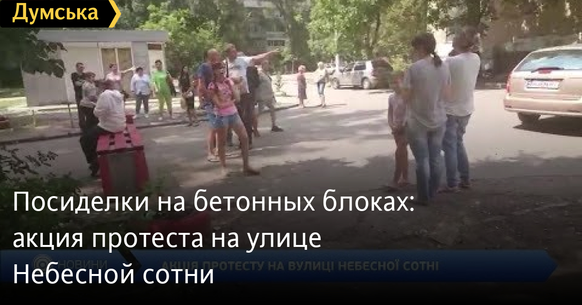 Посиделки на бетонных блоках: акция протеста на улице Небесной сотни. Коммунальщики хотели демонтировать конструкцию, которую установили местные, чтоб заблокировать проезд через их дворы.