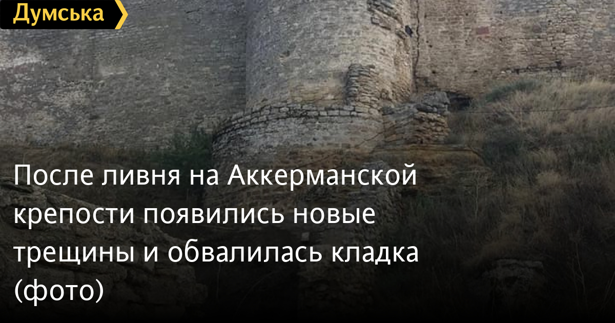 Сильнейшие ливни, прошедшие в Одесской области на минувших выходных, повредили некоторые стены памятника национального значения — Аккерманской крепости.