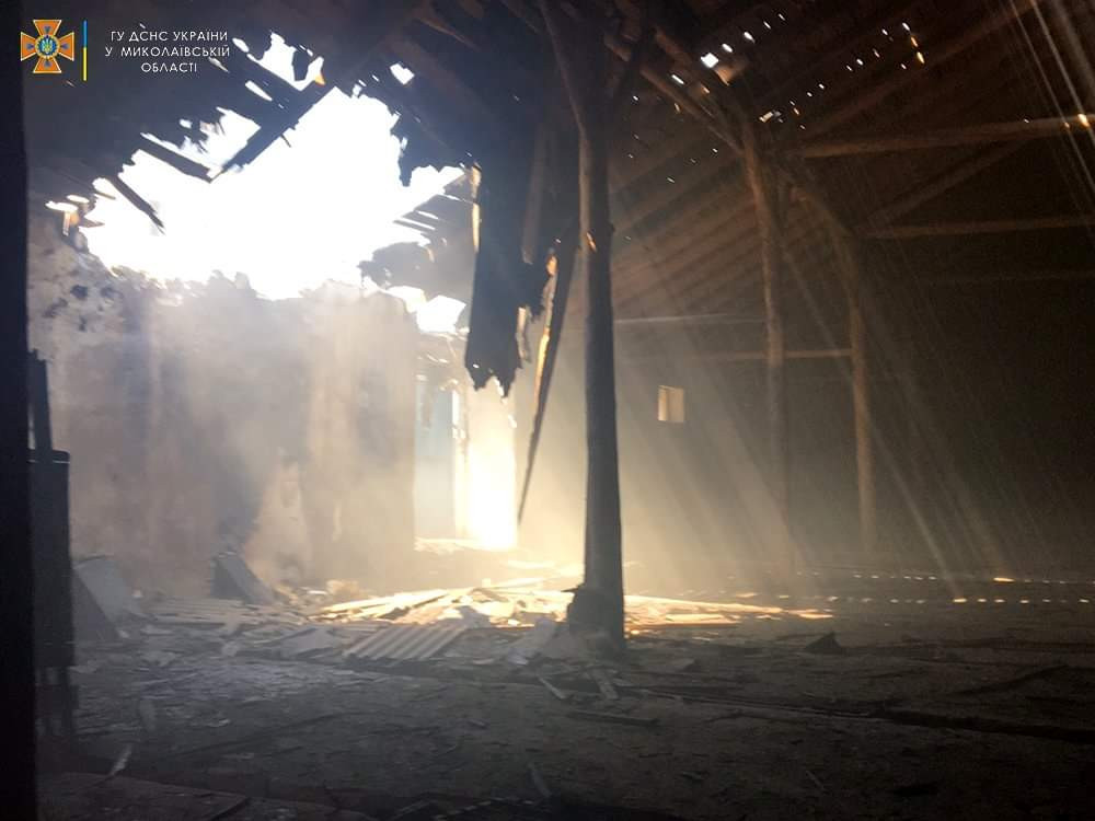 Так, вследствие обстрела села Шевченково Николаевского района вспыхнула территория частного дома. Там загорелся гараж с автомобилем и хозяйственная постройка. На месте было обнаружено тело 80-летнего мужчины. Также в селе горело зернохранилище элеватора.