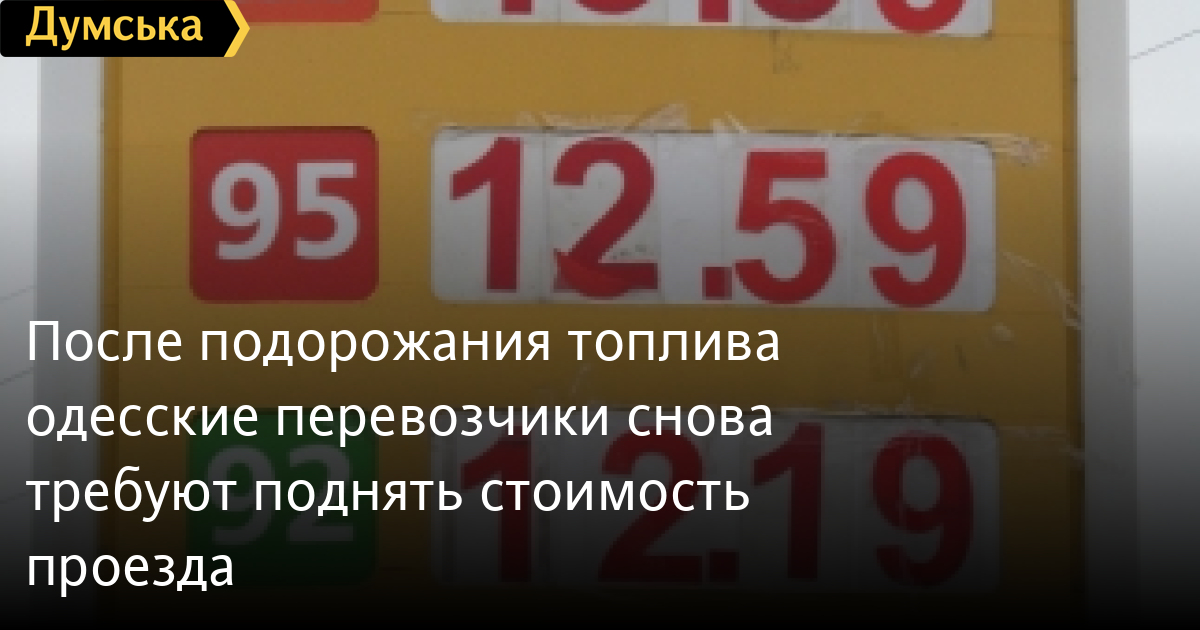 «Если неделю назад дизтопливо было по 9,60 грн, то сейчас — не менее 10,70, а кое-где и за 11 грн за литр цена уже перевалила, а завтра и на гривну может подорожать. Будем поднимать вопрос о повышении тарифов на проезд, на сегодня оптимальная цена – 3,50 грн (вместо 2,50 грн, — Ред.)», — цитирует газета «Вести» замдиректора одного из городских перевозчиков Александра Шкондина.