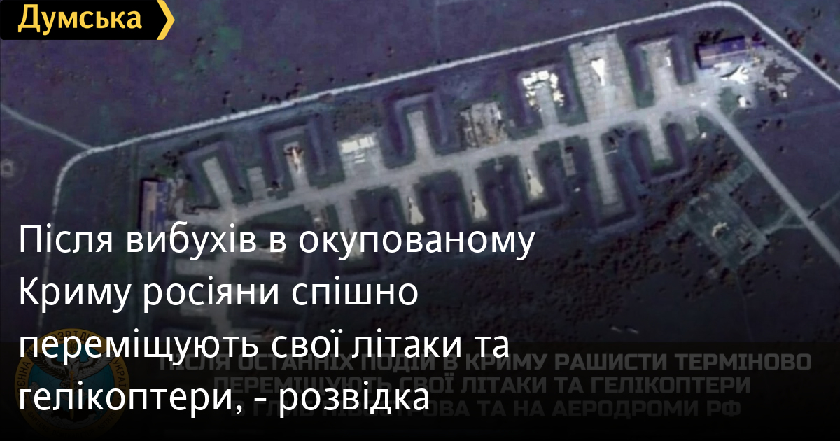 Як повідомляє Головне управління розвідки Міноборони України, після серії вибухів на об’єктах військової інфраструктури тимчасово окупованого півострова Крим загарбники проводять заходи щодо часткового переміщення авіаційної техніки з аеродромів передового базування в Криму на запасні аеродроми та аеродроми постійного базування на території рф.