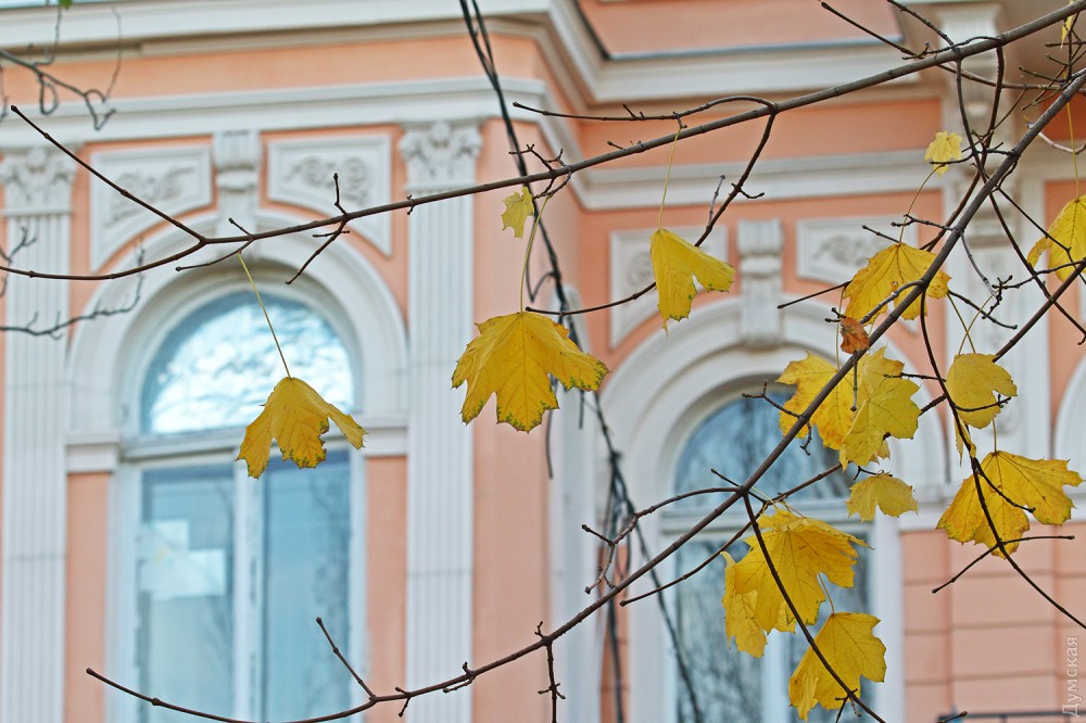 Свежий осенний ветерок за два непогожих дня опустил желто-красную листву под ноги, а голубое небо приобрело первую зимнюю серость. Мокрая листва в парках и скверах уже не шуршит под ногами, зато на балконах домов на одесских улочках еще можно встретить несобранный урожай винограда.