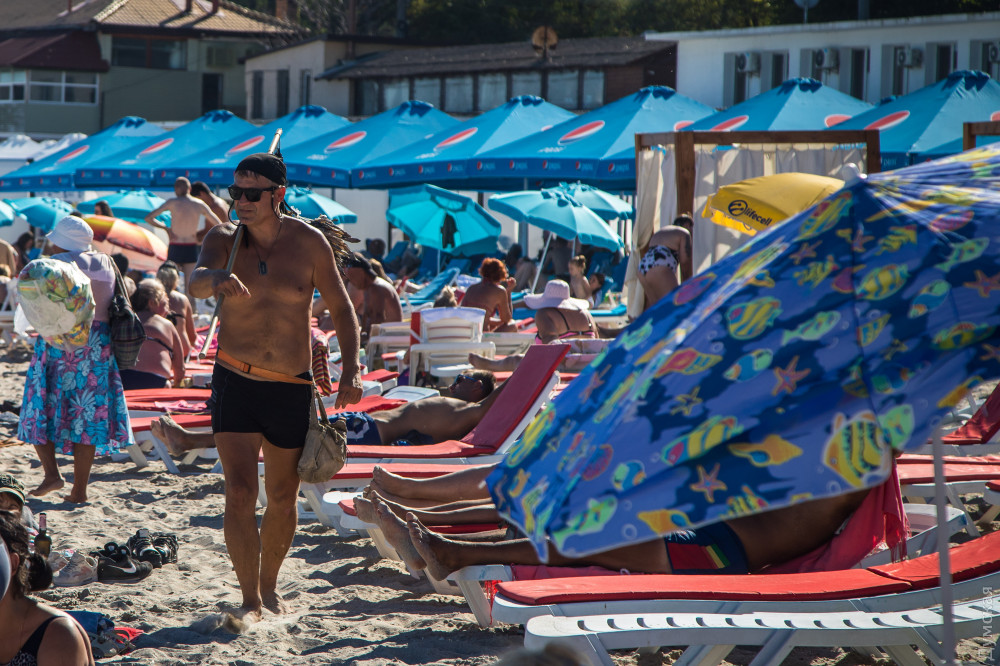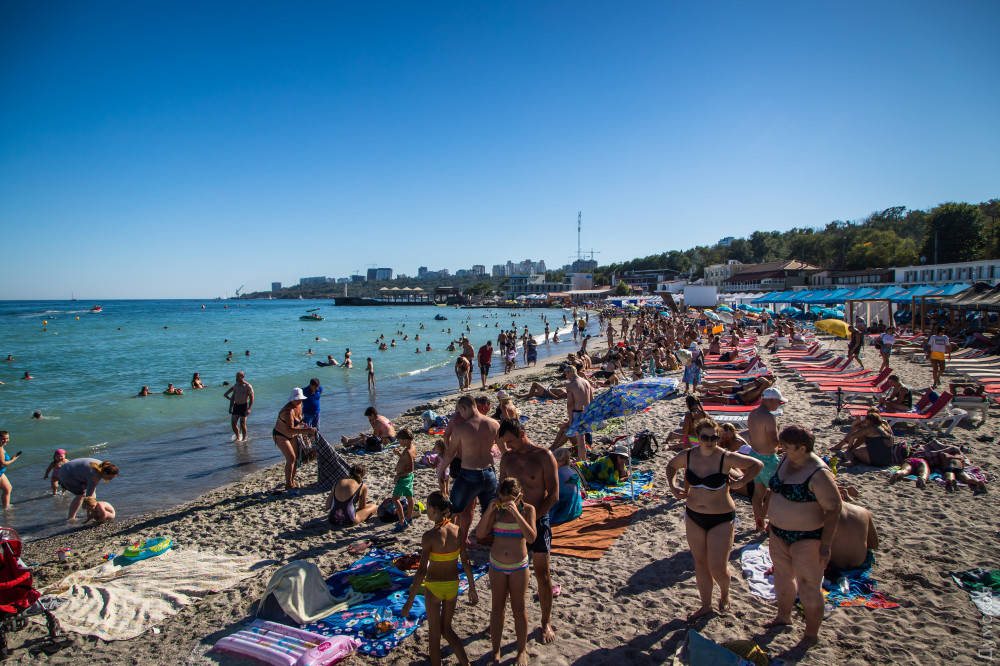 Теплая и солнечная погода на руку как отдыхающим, так и представителям курортного бизнеса: одесские пляжи битком набиты людьми, которые вовсю купаются и тратят деньги.