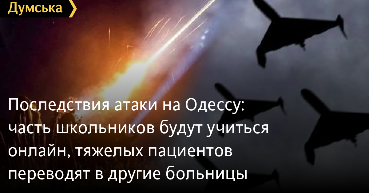 Последствия атаки на Одессу: часть школьников будут учиться онлайн, тяжелых пациентов переводят в другие больницыЧасть учебных заведений Приморского и Пересыпского районов перейдут на онлайн-обучение 25 ноября из-за атаки оккупантов на город. Как сообщил глава военной администрации Сергей Лысак, удар привел к отсутствию отопления. «По больницам решаются вопросы перевозки тяжелых пациентов в другие больницы. От железнодорожного вокзала до Пересыпского района будут курсировать социальные автобусы», — отметил он. Лысак также напомнил, что пункты незламності работают в городе круглосуточно. Ближайший к вашему дому можно найти на карте. Напомним, оккупанты атаковали Одессу ударными беспилотниками вечером. Есть информация о прилетах, но пока никаких официальных данных. У некоторых потребителей пропал свет, а часть маршрутов электротранспорта не курсирует. ОБНОВЛЕНО в 22:05. В пресс-службе «Укрзалізниці» сообщили, что из-за отсутствия напряжения в результате обстрела задерживается отправление поезда №6408 Одесса – Колосовка. Движение продолжится с резервным тепловозом. Сейчас задержка составляет более 1,5 часов. СМЕРТЬ РОССИЙСКИМ ОККУПАНТАМ! Заметили ошибку? Выделяйте слова с ошибкой и нажимайте control-enter
