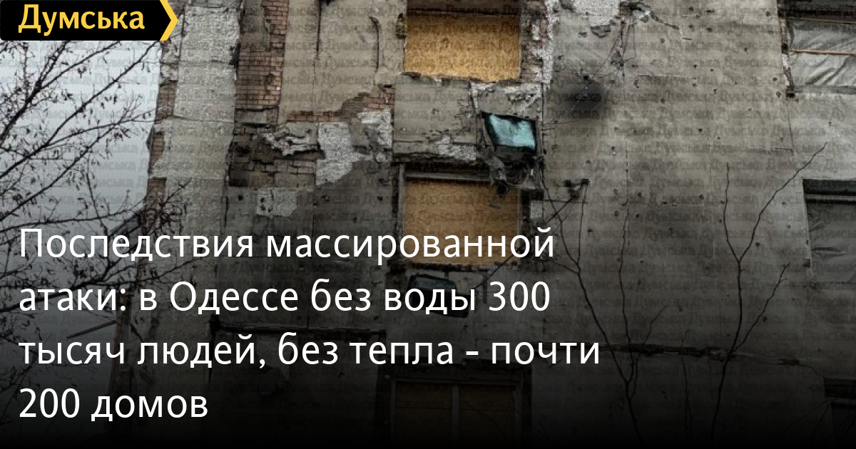 Последствия массированной атаки: в Одессе без воды 300 тысяч людей, без тепла — почти 200 домовОколо 300 тысяч человек в Одессе остались без водоснабжения из-за отключения электроэнергии в результате ночной атаки. Как сообщил вице-премьер-министр Алексей Кулеба, без тепла остались почти 200 домов. «Продолжаются работы по запуску систем, где возможно — привлекаются резервные источники питания», — заявил Кулеба. Он добавил, что враг ночью целенаправленно бил по гражданской и энергетической инфраструктуре не только Одессы, но и Киева, Днепра, Сумской и других областей «На местах работают энергетики, спасатели, коммунальные службы. Делаем все возможное, чтобы как можно быстрее вернуть людям тепло и воду», — подчеркнул вице-премьер-министр. Напомним, в результате удара по Одессе пострадал 58-летний мужчина, поврежден рынок «Черемушки», супермаркет, жилой дом и десятки авто. Без света, воды и отопления остались жители Киевского и Хаджибейского районов. СМЕРТЬ РОССИЙСКИМ ОККУПАНТАМ! Заметили ошибку? Выделяйте слова с ошибкой и нажимайте control-enter |