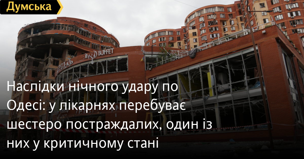 Шість постраждалих унаслідок нічного удару по Одесі перебувають у лікарнях міста станом на 13:00.