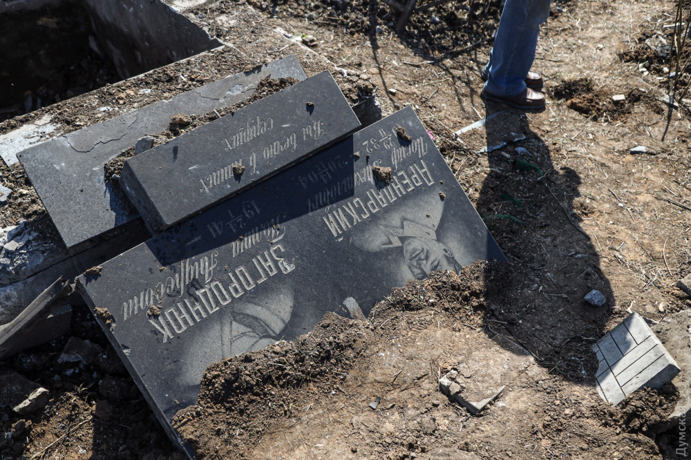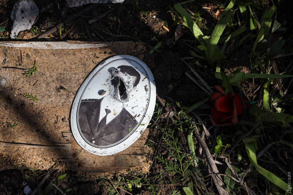 «Нет памятника, только небольшую часть смог найти, — рассказывает мужчина. — Галина Александровна покоится здесь, настоящая одесситка была. Сволочи и подонки, что тут сказать. Не представляю, что было бы, если бы это случилось на проводы».