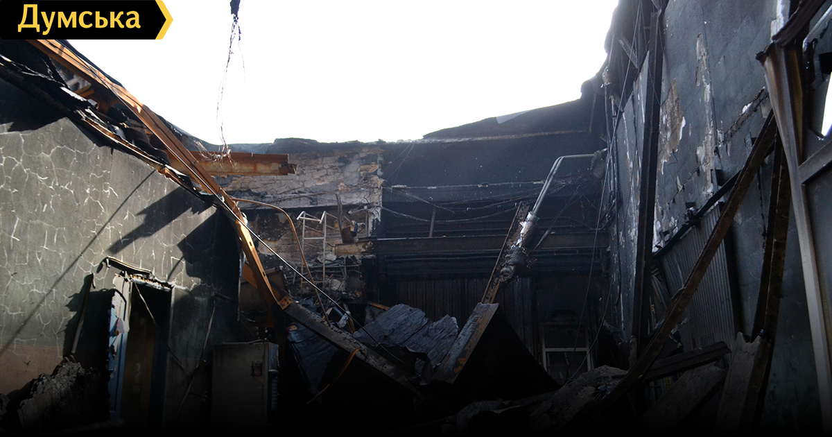 В результате производственное помещение полностью выгорело. Там обрушились металлические и бетонные перекрытия.