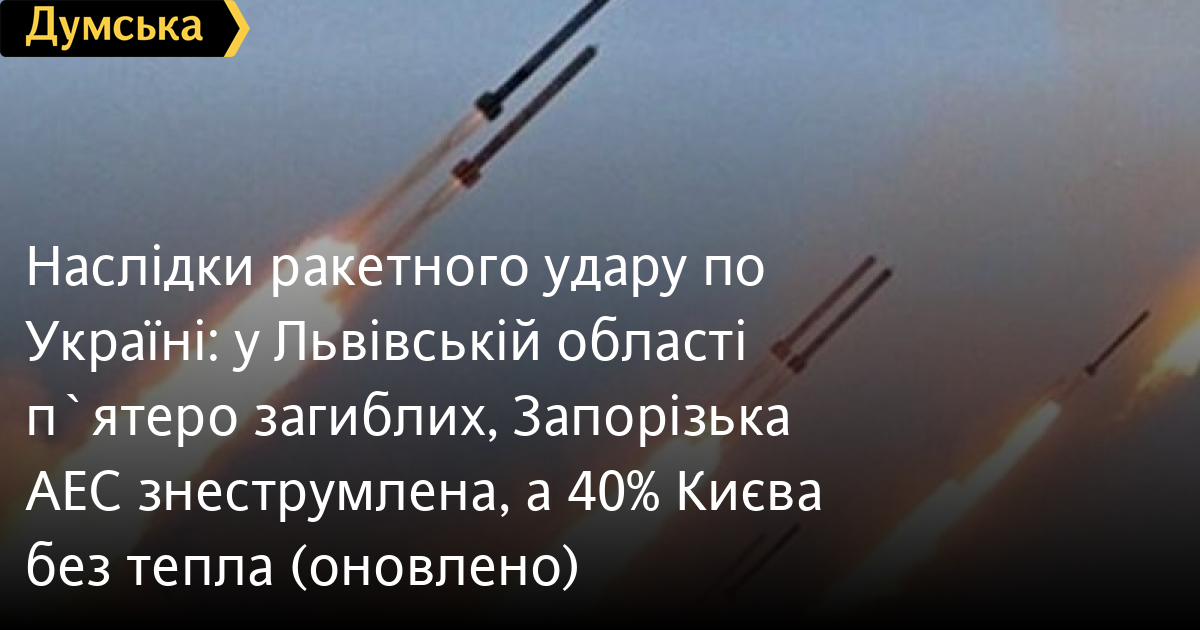 ОНОВЛЕНО об 11:00. У Львівській ОВА повідомили, що кількість загиблих внаслідок обстрілу зросла до п'яти осіб.