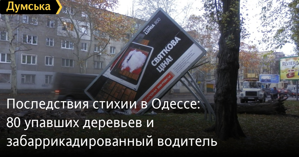 Ночной ураган повалил в Одессе 80 деревьев и сухих веток. Стихия остановила движение на пяти одесских улицах и забаррикадировала в машине одного водителя.