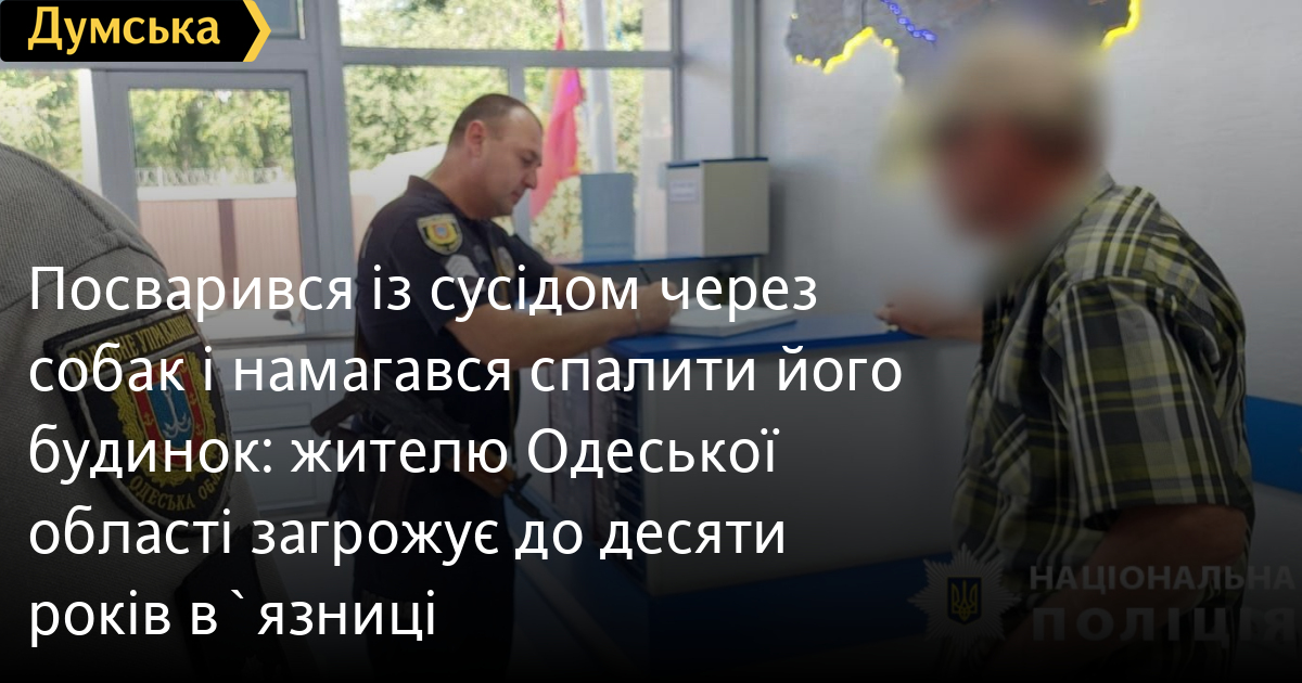 Посварився із сусідом через собак і намагався спалити його будинок: жителю Одеської області загрожує до десяти років в`язниціЖителя Білгород-Дністровського району, який намагався підпалити житло сусіда, затримали правоохоронці. Як повідомили у пресслужбі поліції Одеської області, 63-річний чоловік посварився зі своїм 58-річним сусідом через те, що собаки старшого бігали на вулиці, а молодшого це обурило. Вони посварилися і розійшлися по домівках, але пізно вночі 58-річний зловмисник прийшов до будинку опонента з «коктейлем Молотова», підпалив його і кинув у вікно. На щастя, під час удару об скло вогонь згас і загоряння не сталося, і ніхто не постраждав. Господар житла звернувся до поліції і правоохоронці, зібравши необхідні докази, повідомили про підозру за ч. 2 ст. 15 та ч. 2 ст. 194 КК України невдалому палію. Підозрюваного затримали, йому загрожує від трьох до десяти років позбавлення волі. Помітили помилку? Виділяйте слова з помилкою та натискайте control-enter Новини по цій темі: 29 липня 2025: В Усатово Одеської області сталася перестрілка: поліція працює на місці (відео, оновлено) 28 липня 2025: П'яний на "Ягуарі" або гіпертонік? Звільнений топ-посадовець одеської поліції хоче повернутися на службу 19 червня 2025: Дівчинку, яку шукали сотні одеситів, знайшли вбитою: поліція працює з чоловіком, ймовірно причетним до загибелі 27 травня 2025: Увели гектар в університету: на Одещині засудили земельних аферистів, але без посадки і Хвоста |