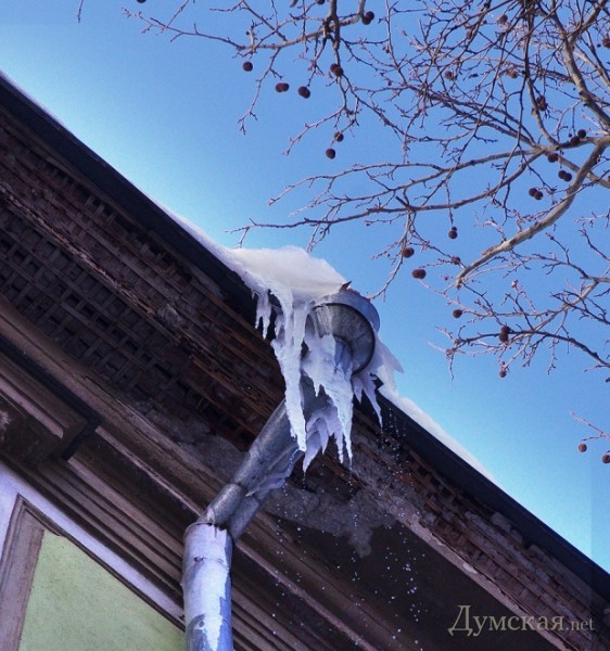 Тротуары по-прежнему остаются расчищенными только в тех местах, где подсуетились владельцы прилегающих магазинов и офисов. То есть, наверное, на одной сотой от всей площади пешеходных зон. Тем временем, с крыш на прохожих хищно скалятся сосульки, разросшиеся до полуметра в диаметре и двух-трех метров в длину.