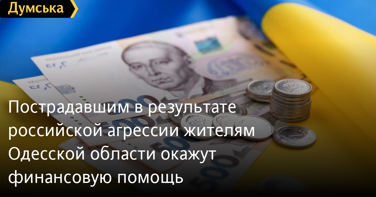 Жителям Одесской области, пострадавшим в результате российской агрессии, окажут финансовую помощь за счет средств регионального бюджета.