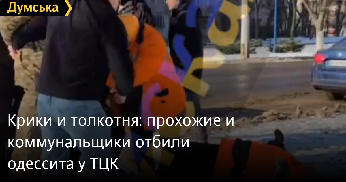 Крики и толкотня: прохожие и коммунальщики «отбили» одессита у ТЦКПотасовка с участием сотрудников ТЦК, полиции и гражданских произошла сегодня в Киевском районе Одессы. По словам очевидцев, на улице Академика Королева представители ТЦК пытались силой доставить мужчину в микроавтобус. На помощь парню пришли случайные прохожие, среди которых были сотрудники ЖКС «Вузовский». В ходе конфликта одна из работниц коммунальной службы с криками упала на землю. По данным мэрии она не пострадала. Молодому человеку в итоге удалось скрыться. «Думская» обратилась за комментариями в полицию, а также Одесское областное ТЦК и СП, чтобы выяснить подробности происшествия. Ответы ожидаются. «Думская» неоднократно писала о произволе сотрудников ТЦК. Так, в конце прошлого года 53-летний житель Белгорода-Днестровского умер в помещении ТЦК. Предварительное заключение судмедэкспертизы — острая сердечная недостаточность. Однако, по словам очевидцев во время задержания мужчину избивали битами. Кроме того, массовая драка между представителями ТЦК и группой грузчиков произошла в октябре на рынке «Седьмой километр». Конфликт возник после того, как сотрудники ТЦК силой задержали одного мужчину. Словесный спор быстро перерос в стычку с участием около пятидесяти человек. В итоге, люди перевернули бус, в котором находились представители ТЦК. Ранее на территории СТО в Одессе группа людей в военной форме и в гражданской одежде заехали на автобусе на территорию и силой вытащили на улицу сотрудников автосервиса, после чего произошла массовая драка. Еще один случай произошел с медиком, который после драки с представителями ТЦК попал в реанимацию с тремя сломанными ребрами. СМЕРТЬ РОССИЙСКИМ ОККУПАНТАМ! Заметили ошибку? Выделяйте слова с ошибкой и нажимайте control-enter |