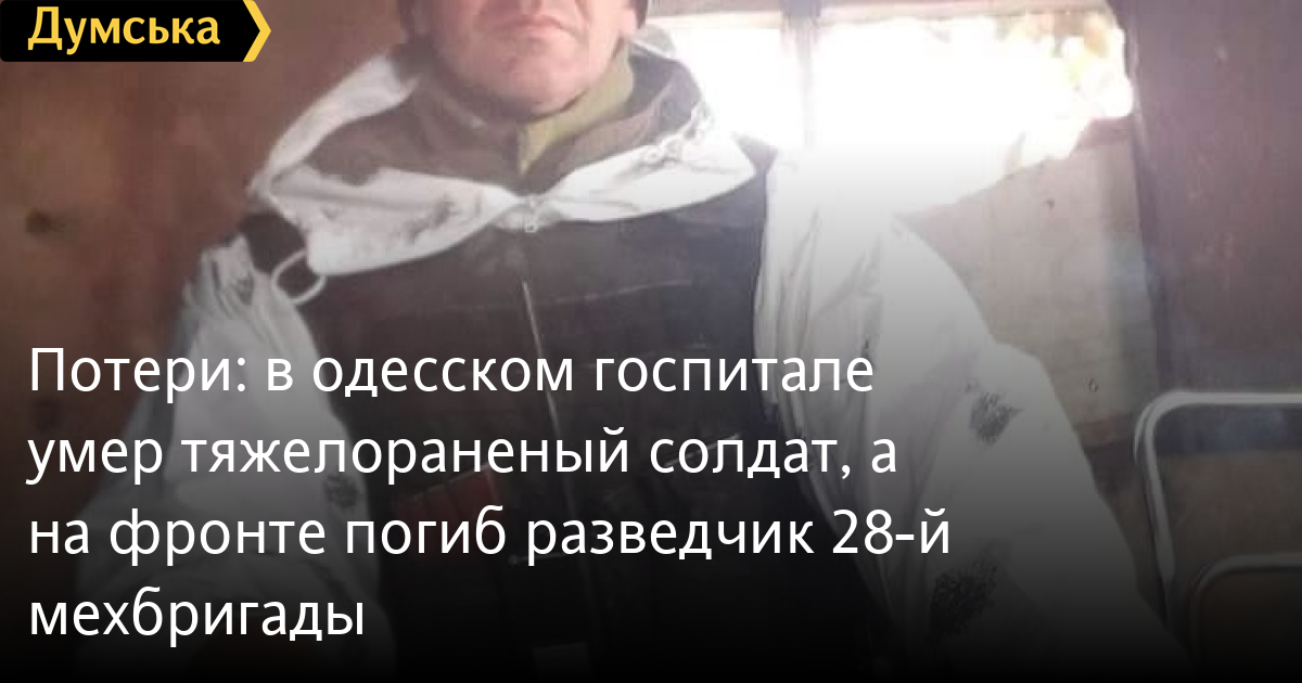 Кроме того, сегодня скончался 21-летний военнослужащий, которого доставили вчера в тяжелом состоянии в одесский военный госпиталь.