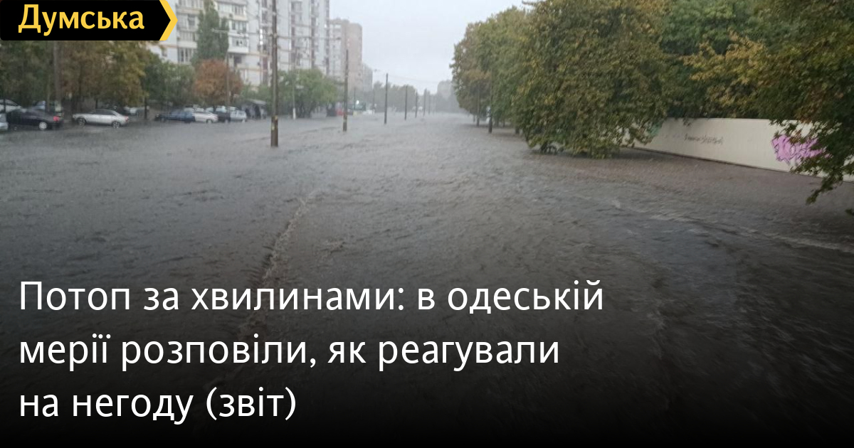 Потоп за хвилинами: в одеській мерії розповіли, як реагували на негоду (звіт)Похвилинний звіт про дії своїх підрозділів під час потопу надала мерія Одеси. Зачитував документ віцемер Валерій Силін, повідомляє кореспондент «Думської». Дії міських структур порівнюють при цьому із реакцією обласної військової адміністрації. Мерія у звіті виглядає явно виграшно, можливо через те, що складали цей рапорт на Біржовій, 1. Так стартує звіт за день до негоди 29 вересня та закінчується увечері 1 жовтня. Наводимо документ таким, яким його демонстрували на позачерговому засіданні сесії. Нагадаємо, 30 вересня на Одесу обрушилася потужна злива, яка за лічені години перетворила вулиці на річки і затопила безліч районів міста. Негода забрала життя 9 людей, ще дві людини загиблих того дня до жертв не відносять. Усього за добу випало близько 94 мм опадів, що можна порівняти з двомісячною нормою. СМЕРТЬ РОСІЙСЬКИМ ОКУПАНТАМ! Помітили помилку? Виділяйте слова з помилкою та натискайте control-enter Новини по цій темі: 7 листопада 2025: До +16, але з дощами: в Одесі прогнозують погіршення погоди 29 жовтня 2025: Котельні готові: Одеса увімкне опалення за два тижні, а початок листопада буде аномально теплим 6 жовтня 2025: Через погіршення погоди школи та садочки Одеської області переводять на дистанційне навчання 1 жовтня 2025: Катастрофа, яку можна було попередити (блог) |