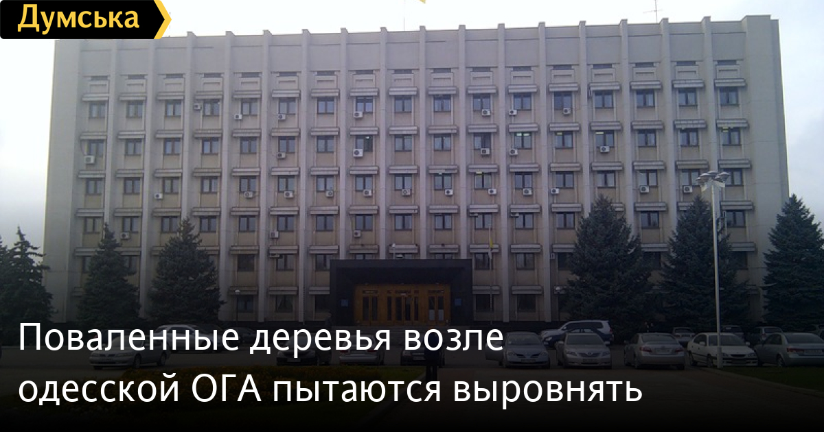 А сегодня вечером, как рассказали «Думской» жители расположенных неподалеку от облгосадминистрации домов, к зданию подъехал подъемный кран и два грузовика. Рабочие, пытаются поставить покосившиеся ели на место.
