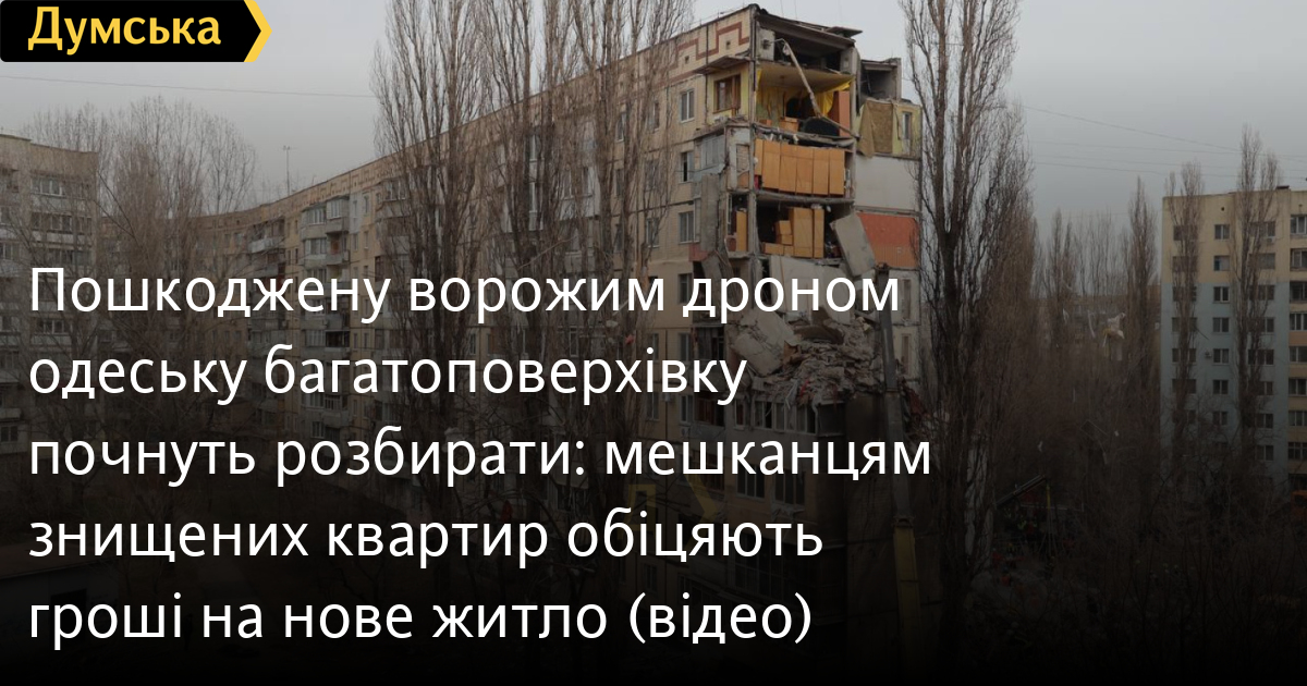 Спецтехніка 22 березня почне розбирати пошкоджений «шахідом» під'їзд багатоповерхового житлового будинку на проспекті Добровольського, 134.