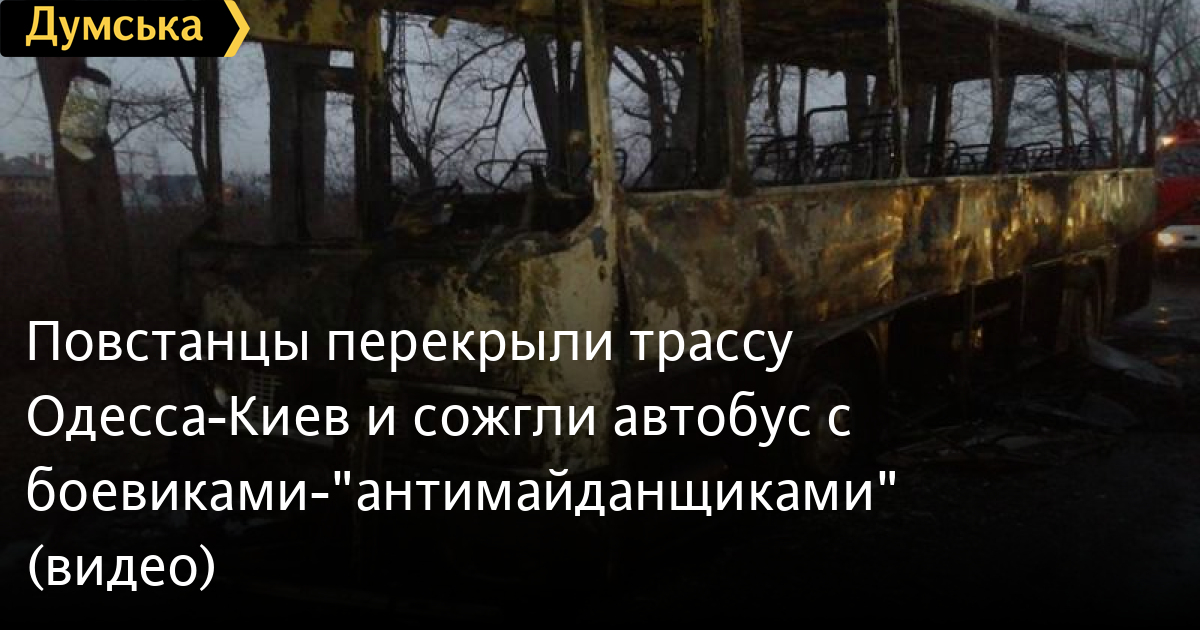 Как передает корреспондент «Думской», легковые машины они пропускают, останавливают только автобусы — ищут боевиков, которых власть стягивает в столицу. Как минимум один автобус был сожжен.Сидевших в нем людей положили лицами на землю. Видеозапись этого момента выложил в сеть «5 канал».