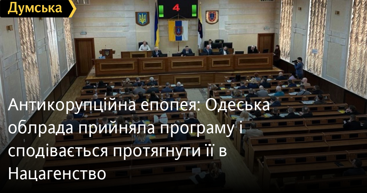 Антикорупційна епопея: Одеська облрада прийняла програму і сподівається протягнути її в НацагенствоНову, вже третю Антикорупційну програму прийняла Одеська обласна рада, попередні два документи забракувало Нацангентство з питань запобігання корупції. За виступили 49 депутатів, передає кореспондент «Думської». За проект рішення не голосувала фракція «Європейської солідарності». Депутат Юлія Чухало зазначила, що документ є фікцією. «НАПК не реєструє програму, тому що там безліч недоробок, відсутні критерії ефективності, на сайті облради не публікуються розпорядження його ж керівника, вони просто приховуються від депутатів і виборців, а сам Григорій Діденко підозрюється в недостовірному декларуванні», — підкреслила вона. На захист програми виступив депутат Сергій Гриневецький, який назвав депутатів облради… піонерами. «Коли програма була не прийнята вдруге, ми звернулися до НАПК і попросили надіслати фахівців, щоб вони допомогли розібратися, що не так з документом, тому є надія, що зараз її зареєструють. Якщо ж ні, то будемо запрошувати в гості керівництво НАЗК. Хочу зазначити, що подібна програма не зареєстрована в жодній області, а ми як піонери вже втретє голосуємо», — заявив Сергій Гриневецький. Зазначимо, що «другу редакцію» програми буквально зліпили на коліні за кілька тижнів. У серпні 2025 року стало відомо, що минулий документ, за який депутати проголосували в червні, просто відмовилися погоджувати, вказавши на численні недоліки. Зазначимо, що в старому документі процедура прийняття не відповідала вимогам законодавства та методології Агентства. Крім того, в програмі плутанина з тим, на кого вона поширюється. Наприклад, не вказані голова облради та його заступники, але при цьому вони згадуються в тексті. А ось чітких показників (KPI), за якими можна буде оцінити, чи виконуються антикорупційні заходи чи ні, там якраз немає. До того ж не були ідентифіковані ризики в таких важливих сферах, як управління комунальним майном, бюджетний процес, публічні закупівлі, договірна робота та інші Документ ігнорував громадськість: не було інформації про пропозиції від зовнішніх зацікавлених сторін (громадськості, експертів) та результати їх розгляду. Нагадаємо, наприкінці 2024 року голова облради «слуга» Григорій Діденко ініціював створення групи «з боротьби з корупцією», що викликало різку критику опозиції. «Думська» неодноразово писала про те, що голова Одеської облради Григорій Діденко потрапляв на перевищення повноважень або спробу таких дій. Він призначив главу одного з КП, хоча зробити це може лише голова ОВА, а не облрада. Строго кажучи, Діденко перебрав повноваження у військової адміністрації і контролює більшу частину витрат регіону. Він також замішаний у низці скандалів, у тому чині й корупційних. Мова йде про схему відмивання бюджетних коштів через комунальні підприємства та установи, про закупівлю партії карет швидкої допомоги, про ремонті бомбосховищ без конкурсу та ін. У Диденка та його радниці Лілії Томашевської вже проходили обшуки як мінімум за двома епізодами — про незаконне збагачення під час війни та про «подарунках» від одержувачів підрядів (зокрема справа фіздиспансеру). За три роки після обрання голова облради збагатився на 24 млн грн, що на 17 млн грн перевищує його фінансові можливості (згідно з деклар