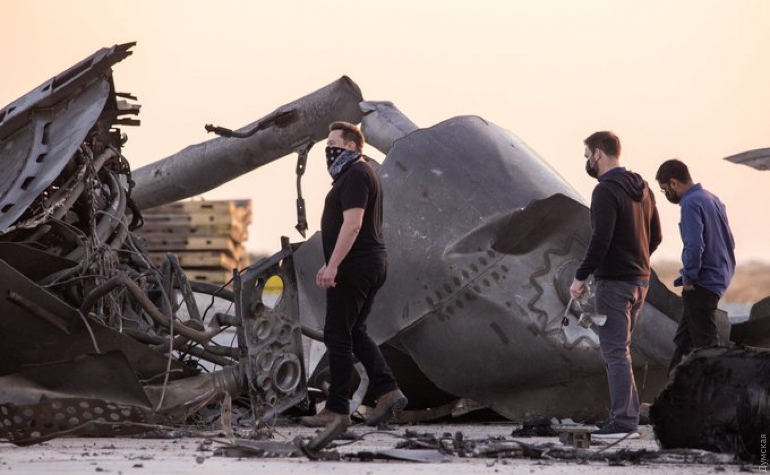 В соцсетях опубликовали фото с места крушения прототипа космического корабля StarShip, который разбился 9 декабря при посадке. Кадры опубликовали американский фотограф Джек Бэйера, NASASpaceflight, пишет «Лига. Новости». На кадрах видно, что передняя часть корабля оторвалась, но при этом она целая. Вместе со своей командой осматривал обломки владелец компании SpaceX Илон Маск. На фотографиях также видно, что во время аварии перевернулся трейлер, который стоял рядом с местом неудавшейся посадки.