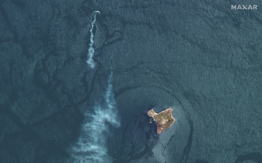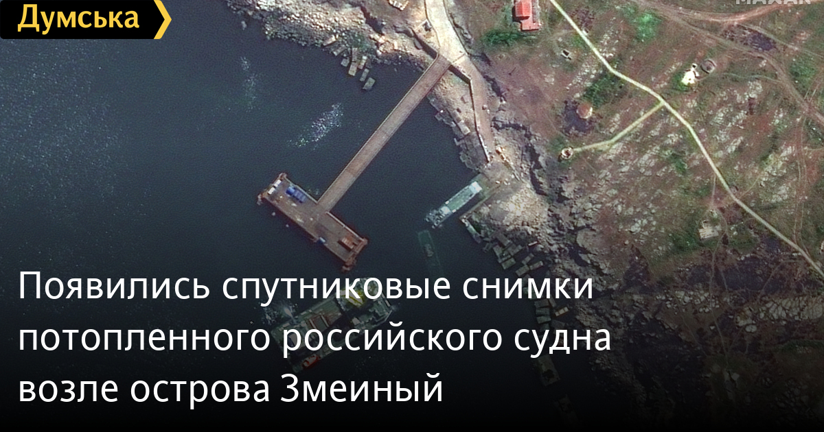 Возле острова Змеиный спутник Maxar Technology зафиксировал потопленный в результате ракетного удара российский десантный корабль класса «Серна».