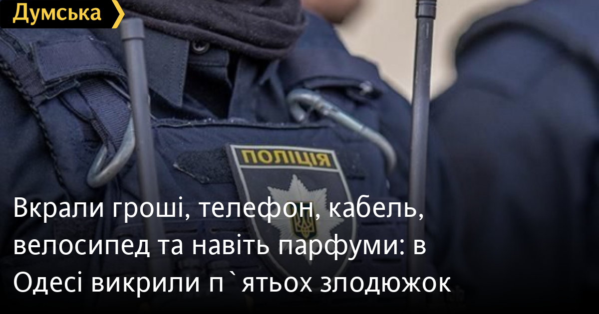 П'ятьох одеситів викрили у крадіжках, вони зазіхнули на гроші, телефон, кабель, велосипед та навіть парфуми.