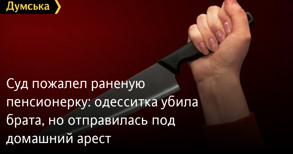 Суд пожалел раненую пенсионерку: одесситка убила брата, но отправилась под домашний арестПоножовщиной и смертью закончилась семейная драма в Пересыпском районе Одессы. Как рассказали «Думской» источники в полиции, обычный бытовой конфликт между братом и сестрой перерос в убийство. Трагедия случилась еще в 20-х числах декабря. Пенсионерка начала ссориться с братом утром. В разгар ругани мужчина достал нож и ударил им родственницу в грудь, сломав ребро. На помощь женщине бросился ее муж. Вместе супругам удалось повалить нападавшего на пол и выбить нож из рук. Опасность, казалось, миновала но женщина подобрала с пола оружие и нанесла брату ответный удар в область ключицы. Следствие считает, что это было не самооборона, а именно умышленное убийство из мести, так как удар был нанесен уже после того, как нападавшего обезоружили. Подозреваемая пенсионерка, инвалиl 2-ой группы, ранее проблем с законом не имела. Полиция открыла уголовное производство по ч. 1 ст. 115 УК Украины (умышленное убийство). Суд пошел ей на встречу и отправил под круглосуточный домашний арест на два месяца. На этот период ей можно покидать квартиру только, чтобы укрыться во время воздушной тревоги. СМЕРТЬ РОССИЙСКИМ ОККУПАНТАМ! Заметили ошибку? Выделяйте слова с ошибкой и нажимайте control-enter |