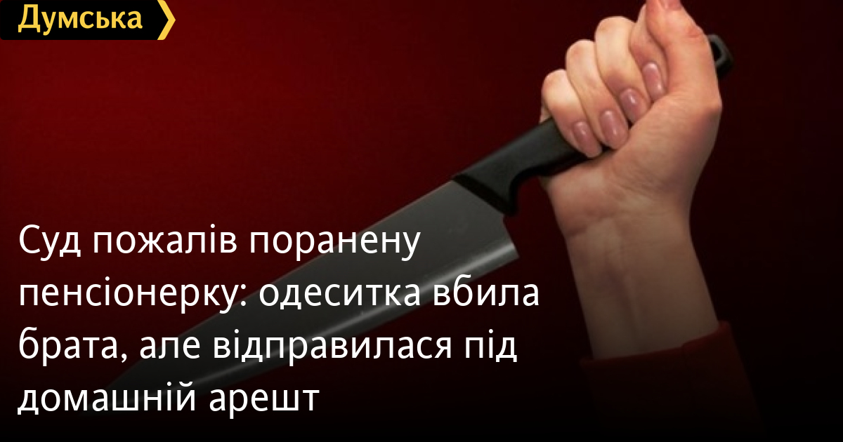 Суд пожалів поранену пенсіонерку: одеситка вбила брата, але відправилася під домашній арештБійкою на ножах і смертю закінчилася сімейна драма в Пересипському районі Одеси. Як розповіли «Думській» джерела в поліції, звичайний побутовий конфлікт між братом і сестрою переріс у вбивство. Трагедія сталася ще в 20-х числах грудня. Пенсіонерка почала сваритися з братом вранці. У розпал сварки чоловік дістав ніж і вдарив ним родичку в груди, зламавши ребро. На допомогу жінці кинувся її чоловік. Разом подружжю вдалося повалити нападника на підлогу і вибити ніж з рук. Небезпека, здавалося, минула, але жінка підібрала з підлоги зброю і завдала братові удар у відповідь в область ключиці. Слідство вважає, що це була не самооборона, а саме умисне вбивство з помсти, оскільки удар було завдано вже після того, як нападника обеззброїли. Підозрювана пенсіонерка, інвалід 2-ї групи, раніше проблем із законом не мала. Поліція відкрила кримінальне провадження за ч. 1 ст. 115 КК України (умисне вбивство). Суд пішов їй назустріч і відправив під цілодобовий домашній арешт на два місяці. На цей період їй можна залишати квартиру тільки, щоб сховатися під час повітряної тривоги. СМЕРТЬ РОСІЙСЬКИМ ОКУПАНТАМ! Помітили помилку? Виділяйте слова з помилкою та натискайте control-enter |