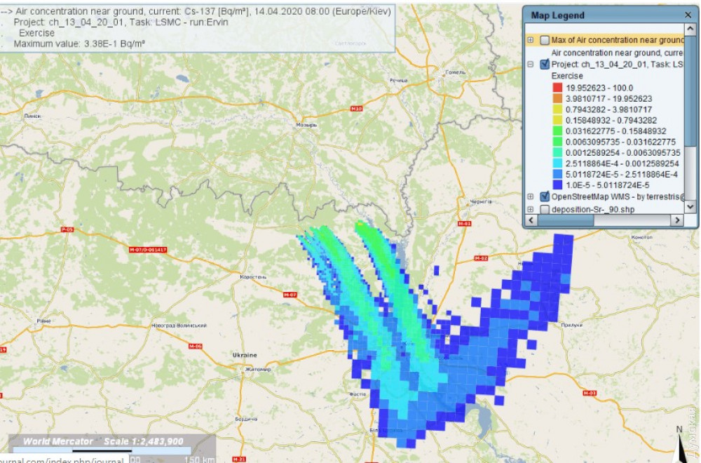 Там также представили карту перемещения потенциально загрязненных воздушных масс.