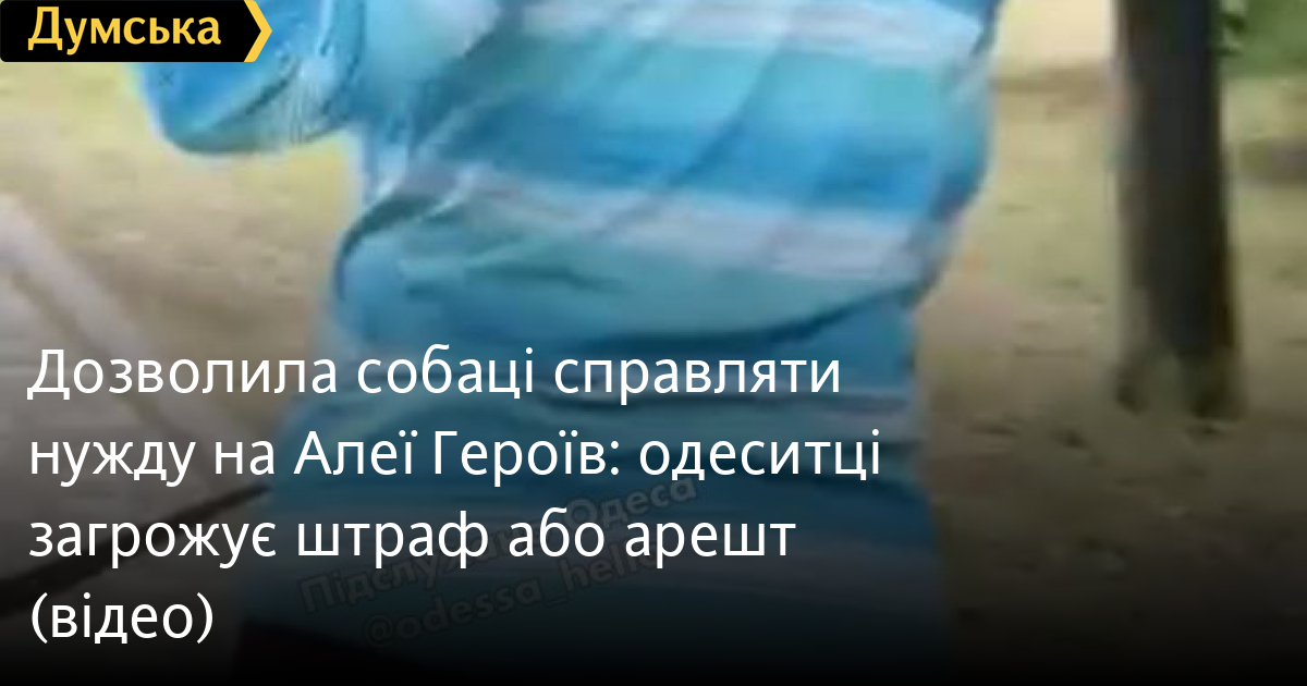 Дозволила собаці справляти нужду на Алеї Героїв: одеситці загрожує штраф або арешт (відео)Штраф або арешт строком до 15 діб загрожує одеситці, яка 12 травня вигулювала свого собаку на Алеї Героїв і дозволила йому справляти нужду біля місця пам'яті полеглих захисників України. Як повідомили у пресслужбі поліції області, правоохоронці знайшли відео конфлікту між власницею тварини та ще однією жінкою під час моніторингу соцмереж. Авторка відео стверджувала, що собачниця, крім іншого, реагувала на зауваження непристойними жестами. Поліцейські встановили особу порушниці, нею виявилася 41-річна одеситка, на яку склали два адмінпротоколи: за порушення правил утримання собак і дрібне хуліганство. Помітили помилку? Виділяйте слова з помилкою та натискайте control-enter |