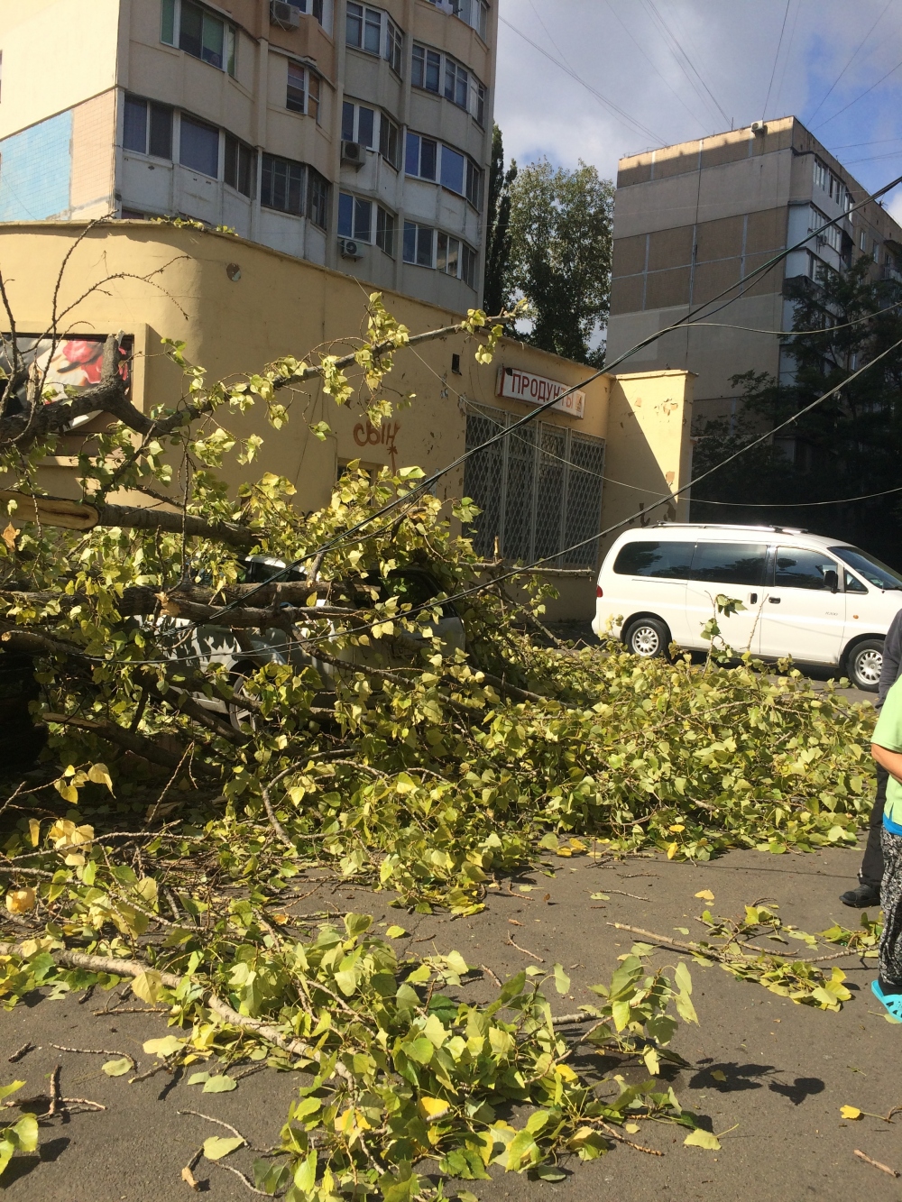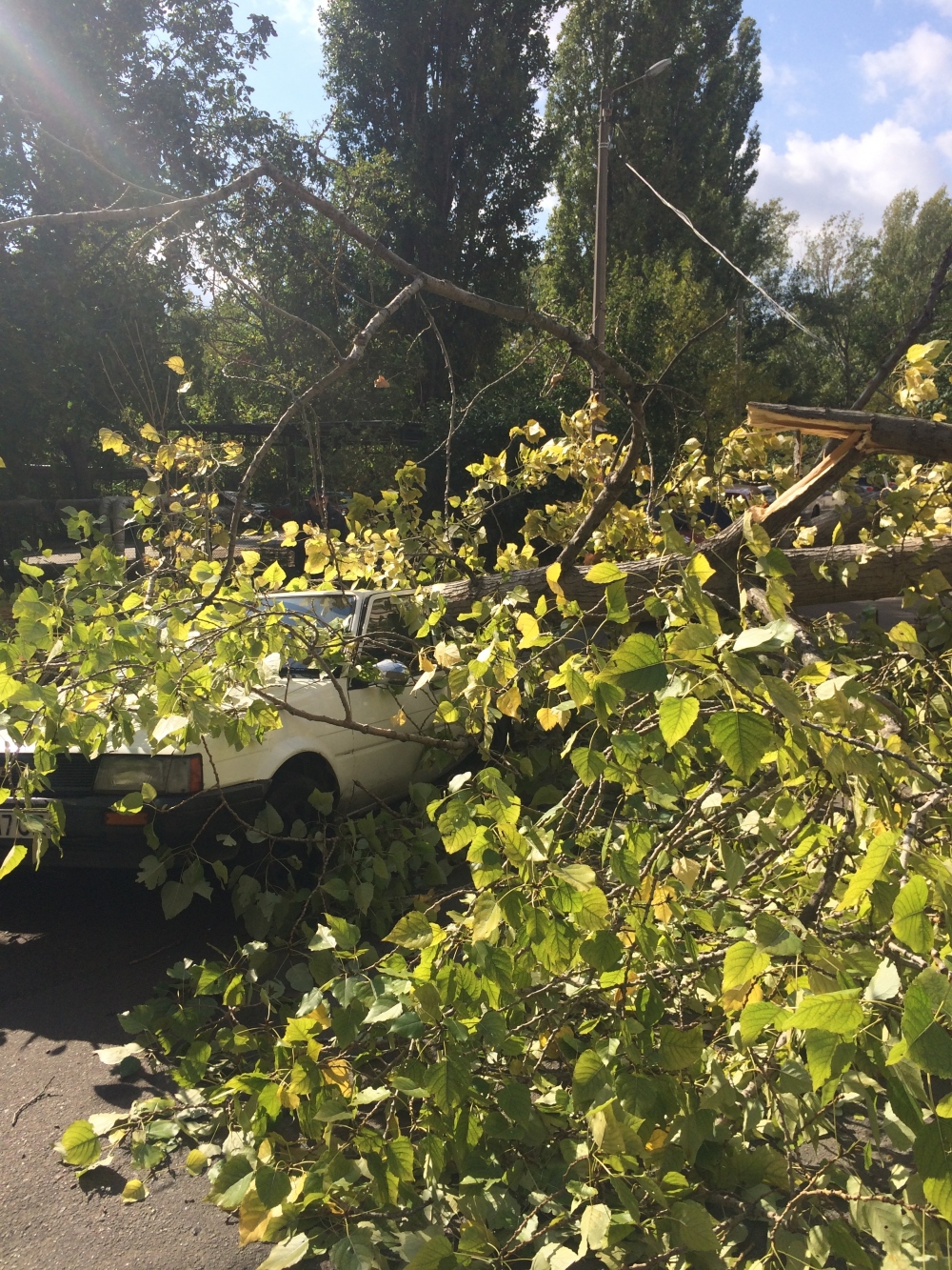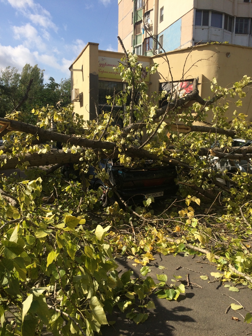 Большое дерево упало только что на проспекте Академика Глушко, возле №15б.
