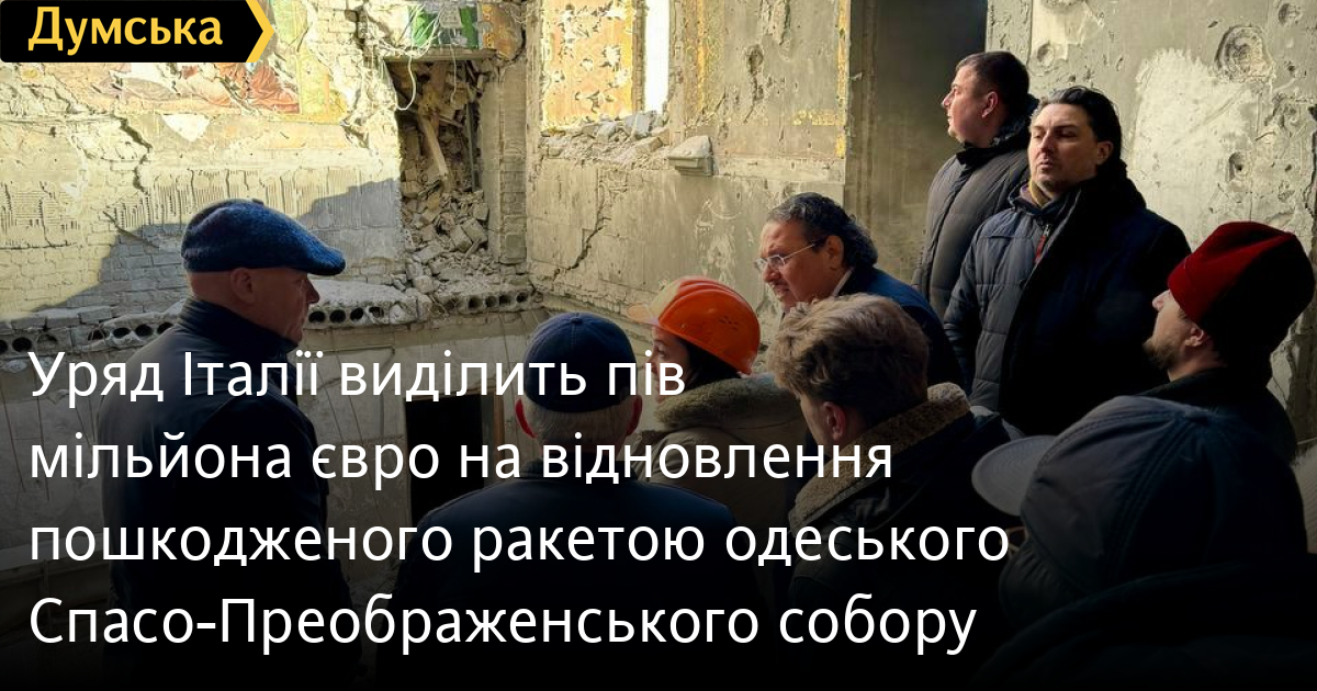 500 тисяч євро виділить уряд Італії на відновлення одеського Спасо-Преображенського собору, частково знищеного російською ракетою в липні 2023 року.