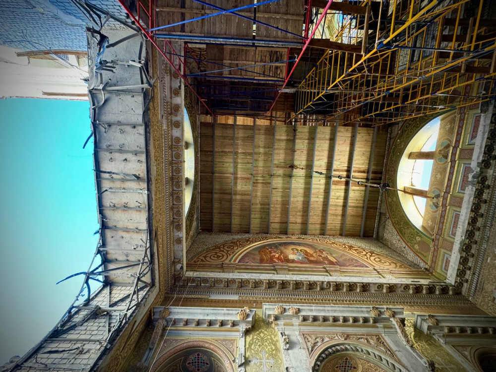 Нагадаємо, під час ракетного обстрілу в ніч на 23 липня російська надзвукова ракета «Онікс» влучила у Спасо-Преображенський собор. Удар був такої сили, що пробито два підземні поверхи, зруйновано вівтарну частину та ризницю. Зараз у соборі тривають відновлювальні роботи.